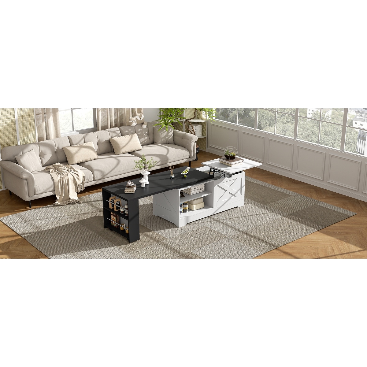 Farmhouse Lift Top Coffee Table with Storage, Farmhouse & Rustic Rectangle Center Table with with Barn Doors and Open Cabinet