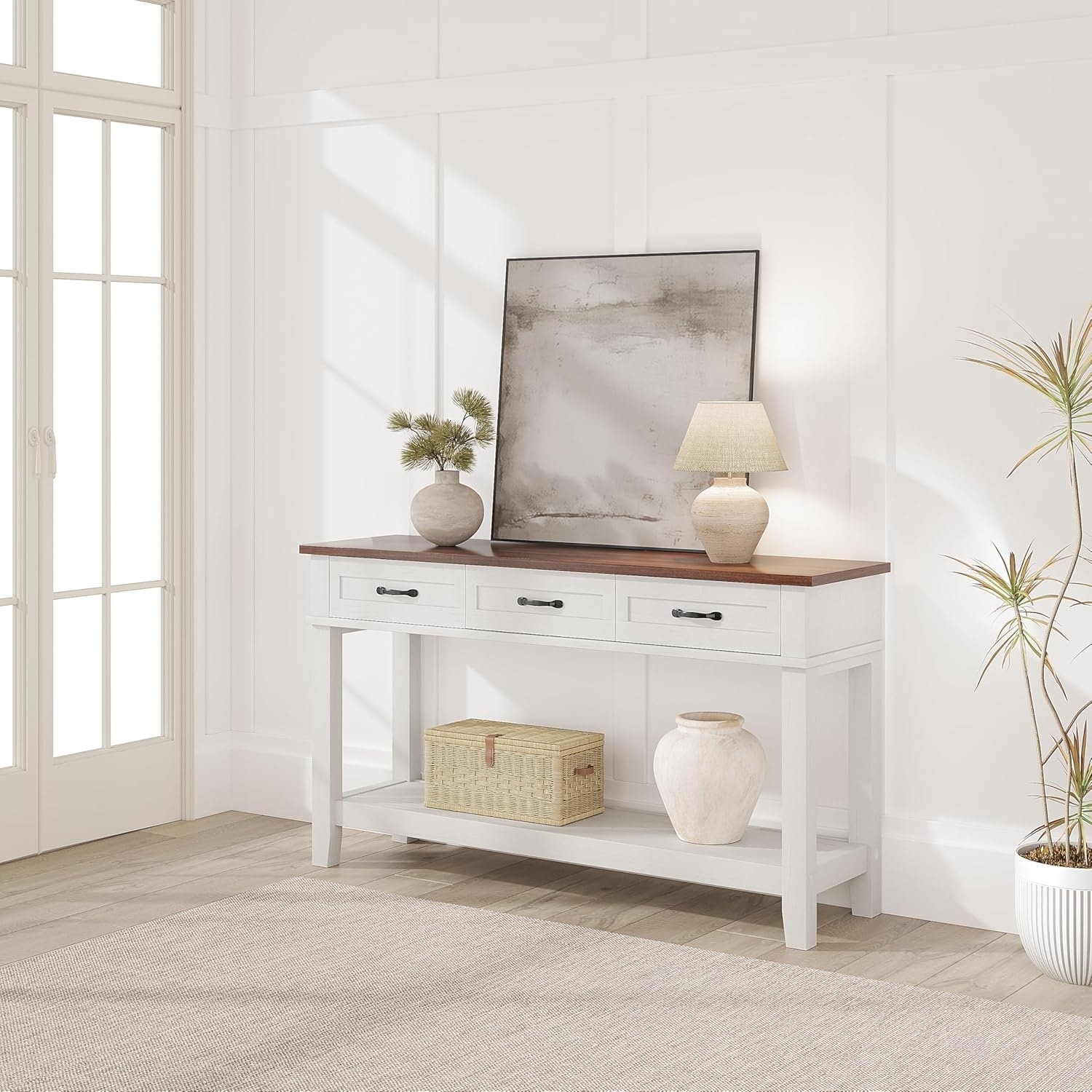 3-Tier Wooden Console Table with 3 Drawers - Hallway & Living Room Sofa Table, Brown & White