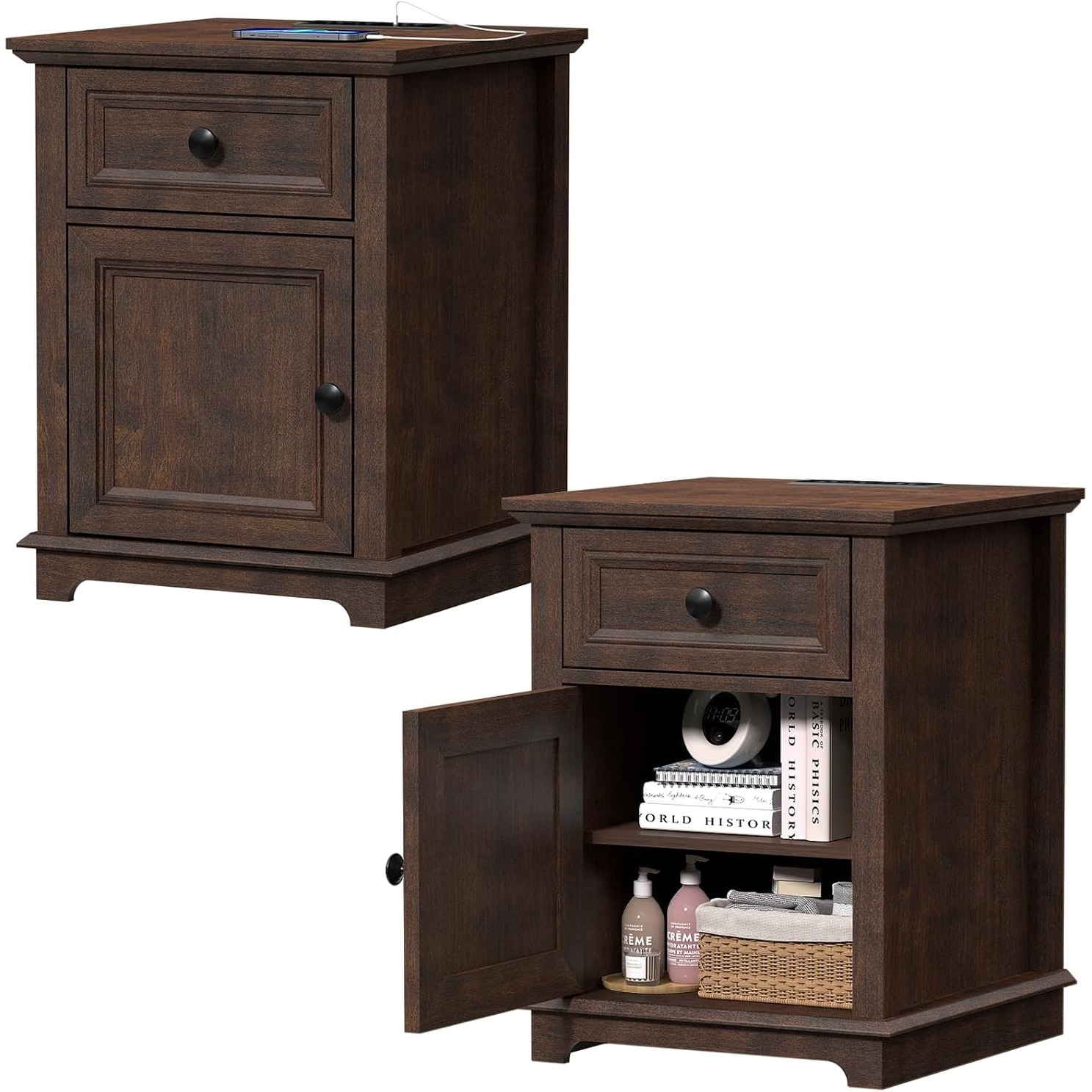 Side Tables with Drawers, Storage & Adjustable Shelf, Set of 2