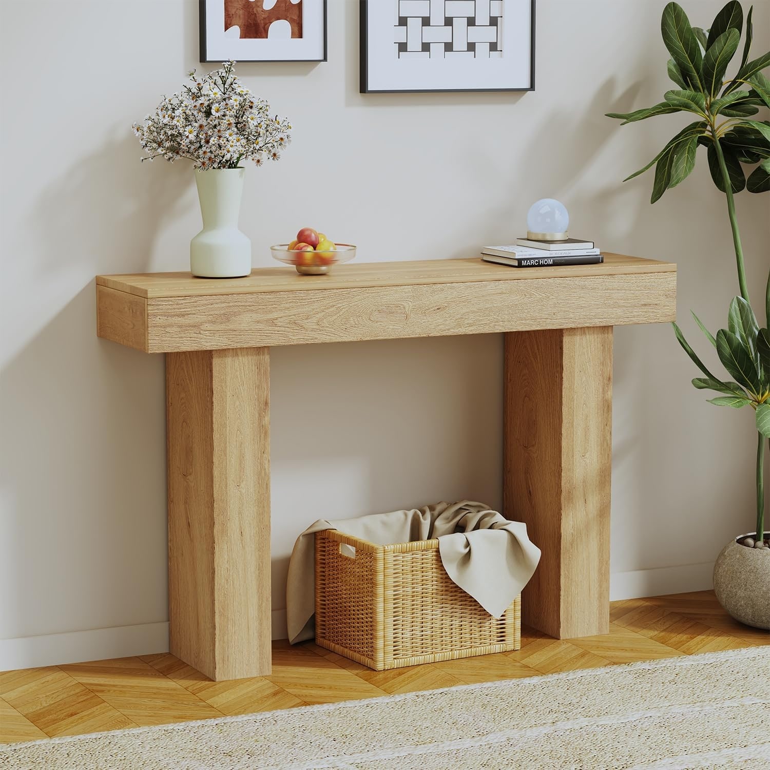 Narrow 43" Console Table with Drawers & Shelf, Solid Wood Legs for Entryway, Hallway or Living Room
