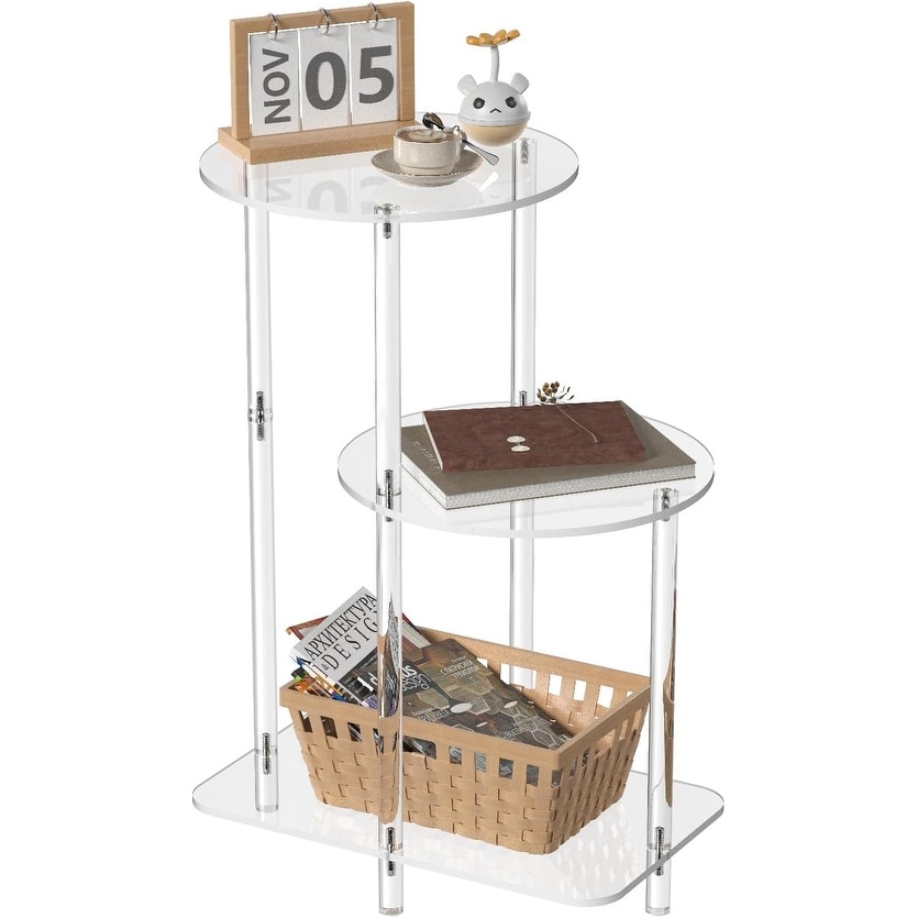 Round Acrylic Side Table - 3-Tier Clear End Table for Living Room, Bedroom, Hallway, 16.7" L x 11.8" W x 23.5" H