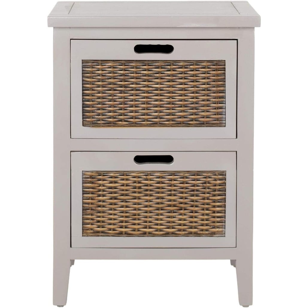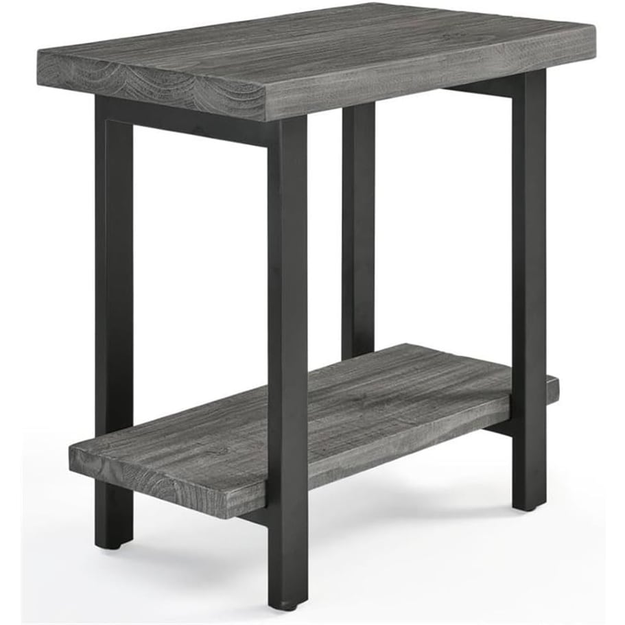 2-Tier End Table, Rustic Natural Finish with Solid Wood, 2 Shelves in Slate Gray