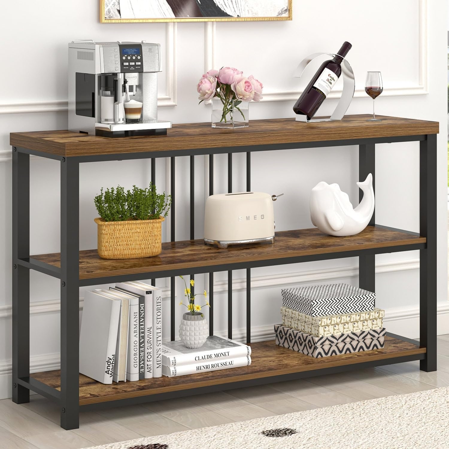 3-Tier Console Table for Living Room, Hallway or Behind Couch - Rustic Brown