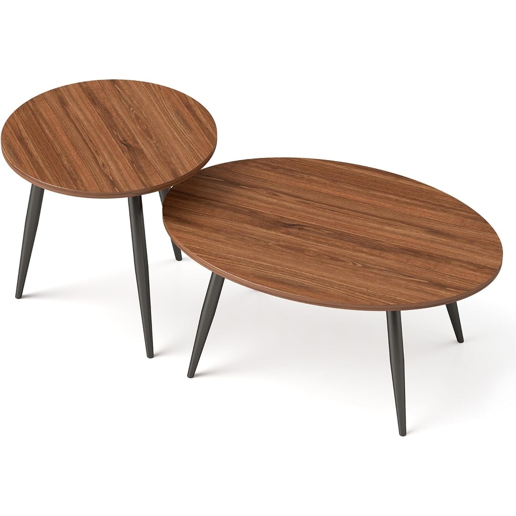 Modern Retro Round Coffee Table, Fir Wood Top with Black Cross Legs Base