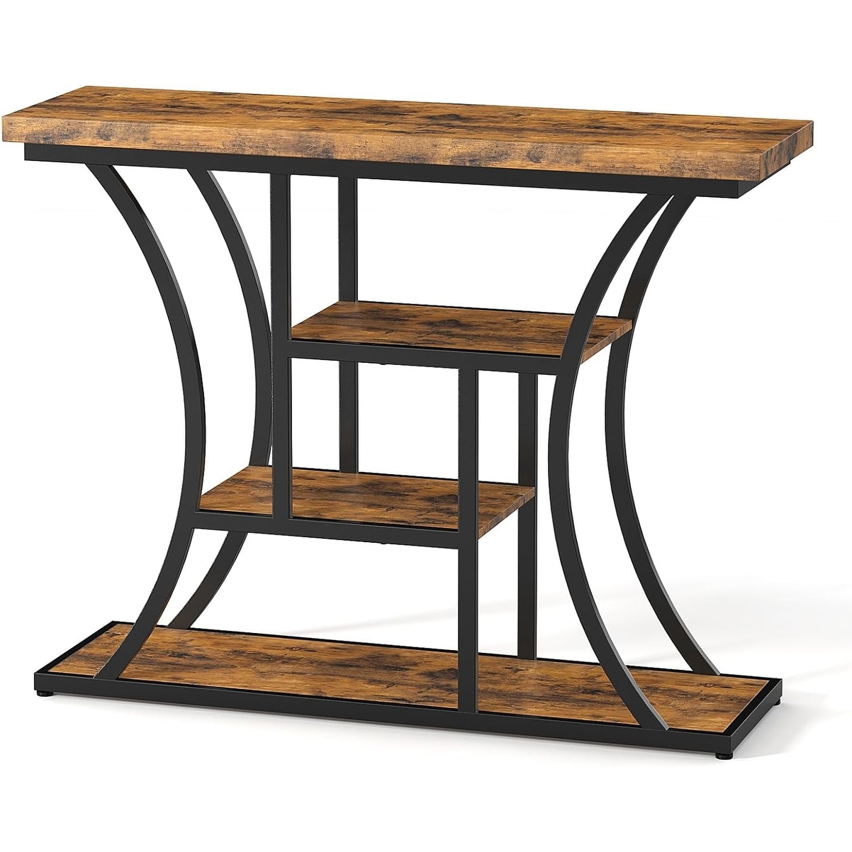 41.3" 4-Tier Console Table with Curved Metal Frame & Storage Shelves for Living Room, Hallway, Entryway