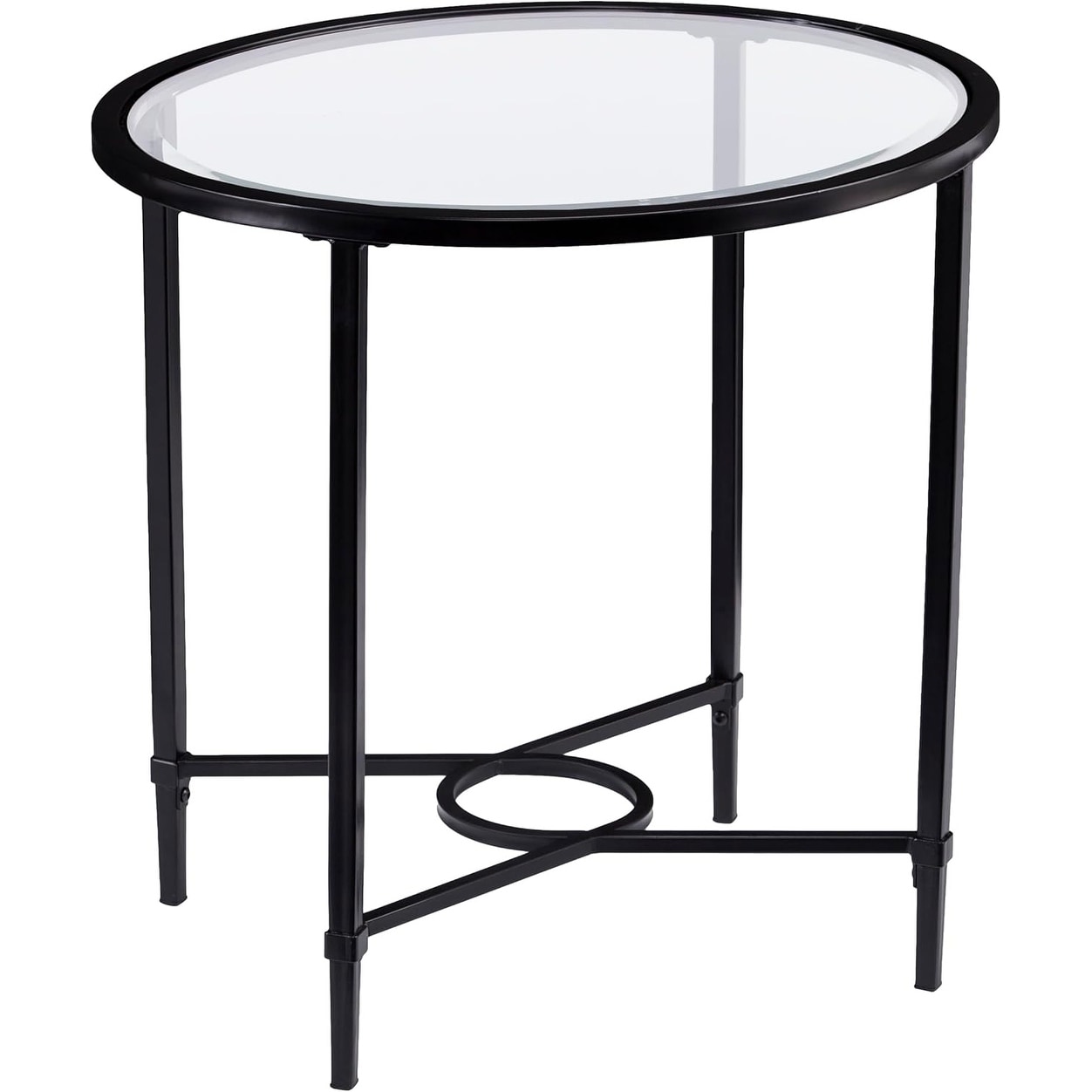 Round Glass End Table with Metal Frame, Small Black Side Table for Living Room, Balcony, Bedroom