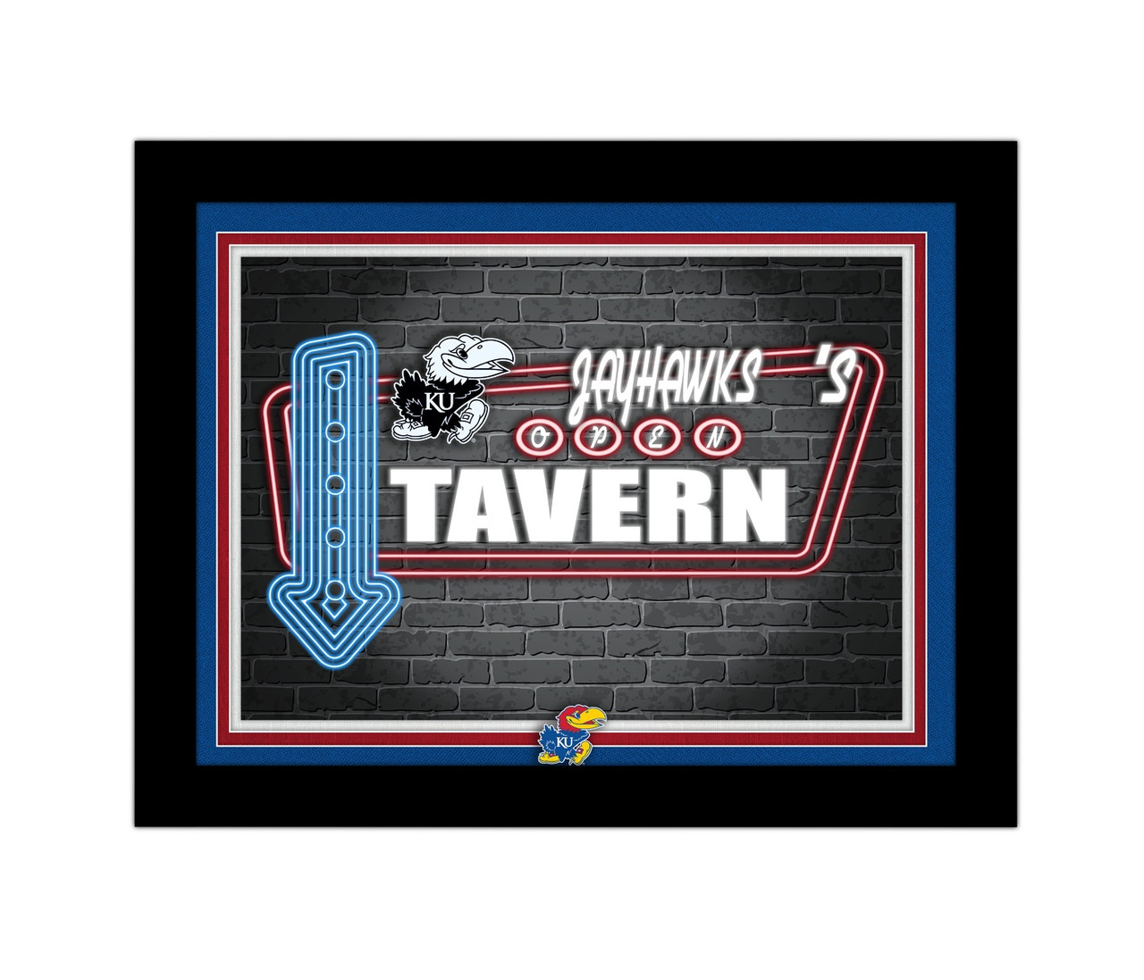 Kansas Jayhawks Neon Tavern 12" x 16" Framed Wall Art