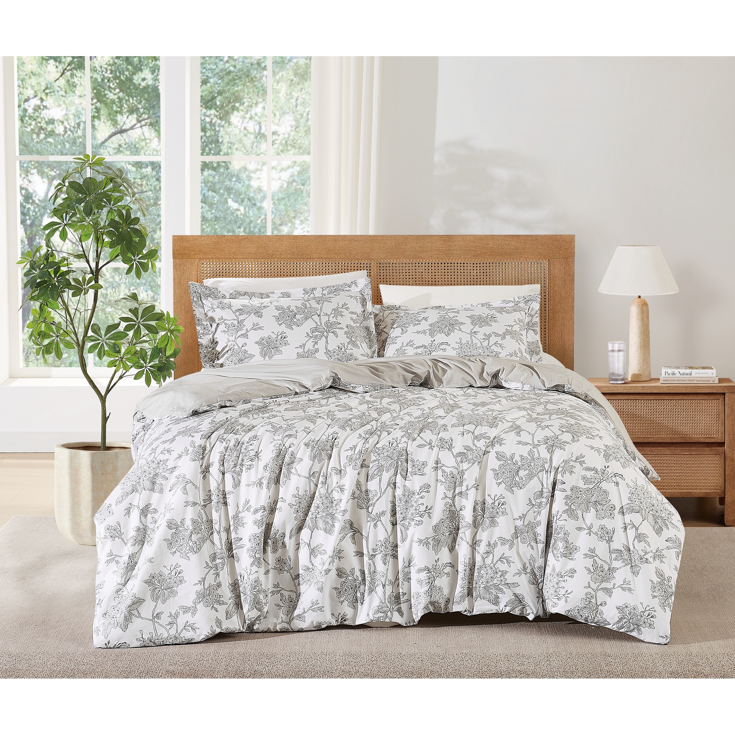 Parsley Black/White Floral 100% Cotton Reversible Comforter Set