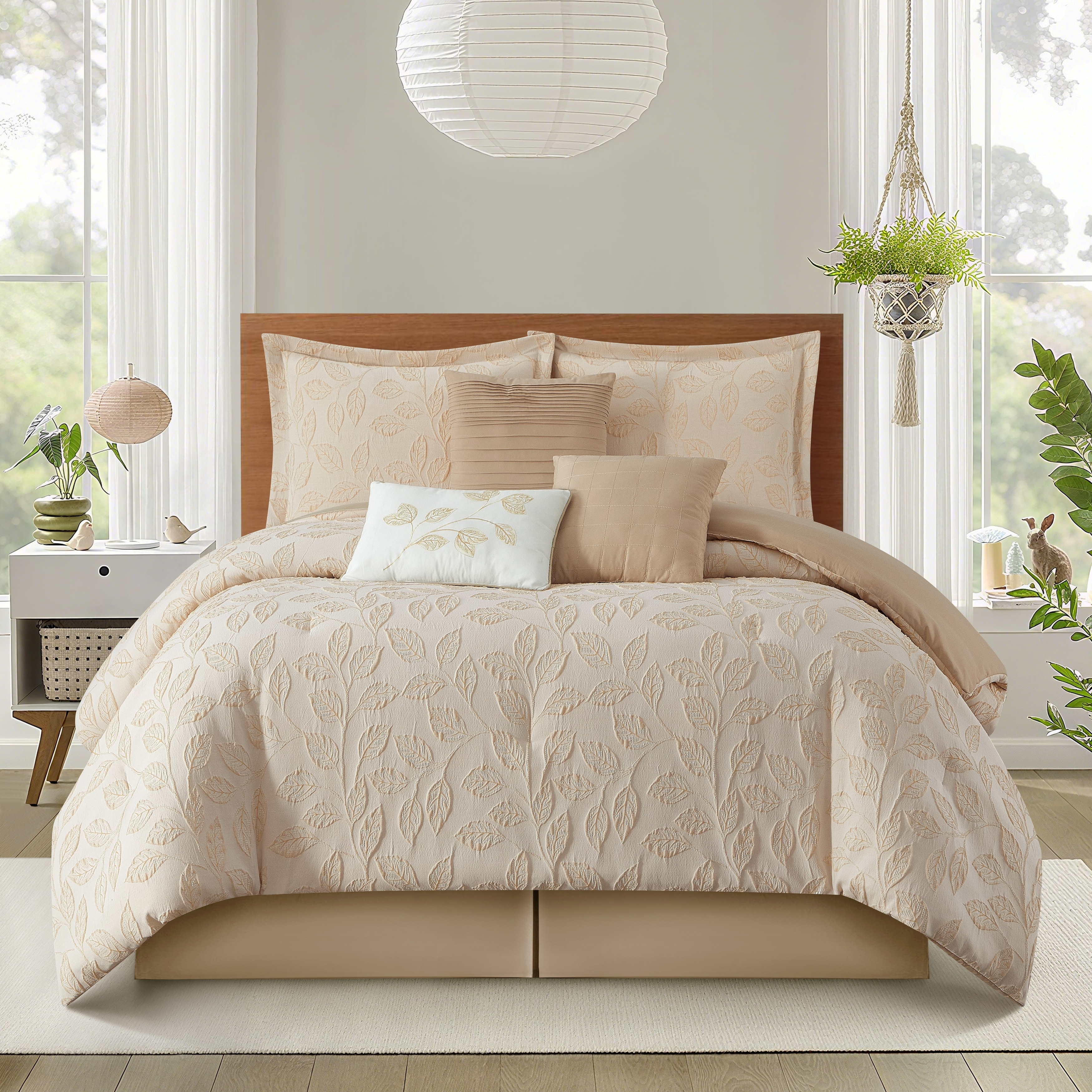 Nanshing Kyro 7 Piece 3D Leaves Jacquard Comforter Set