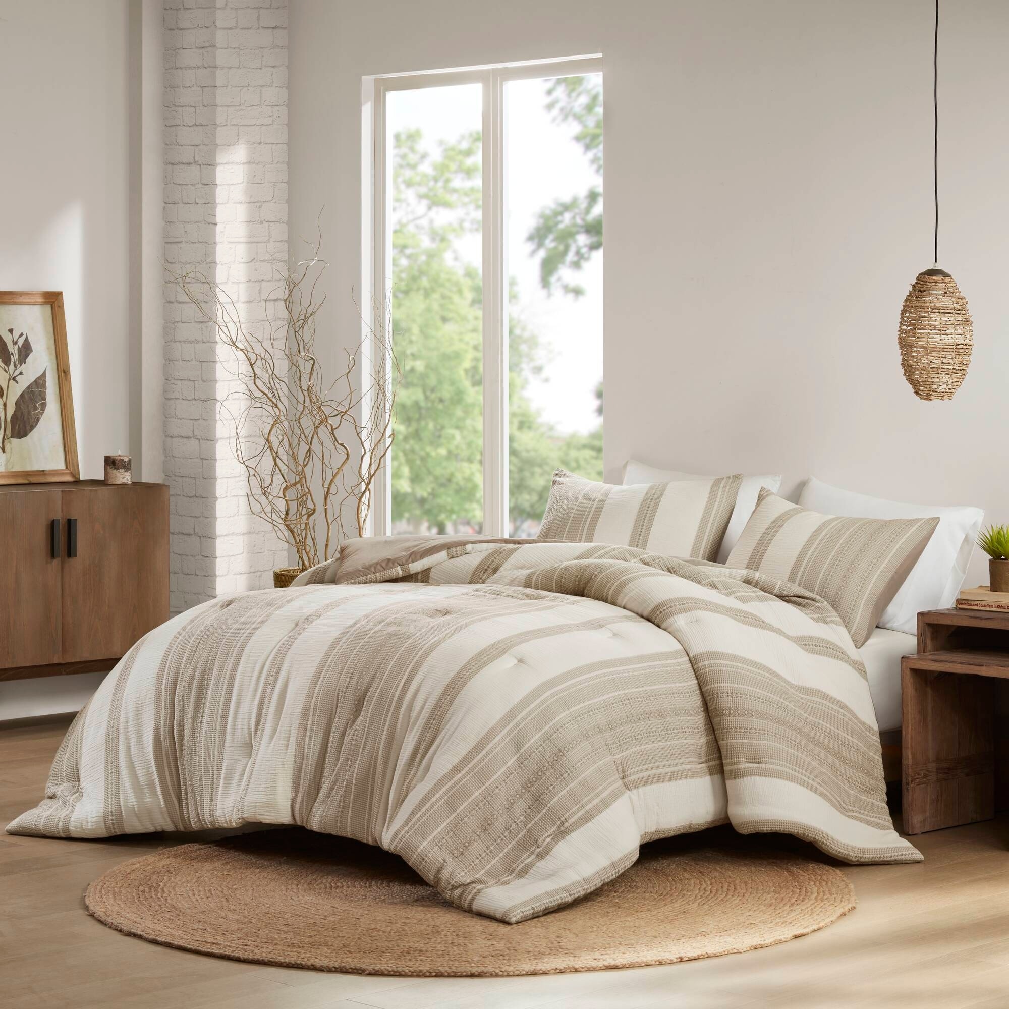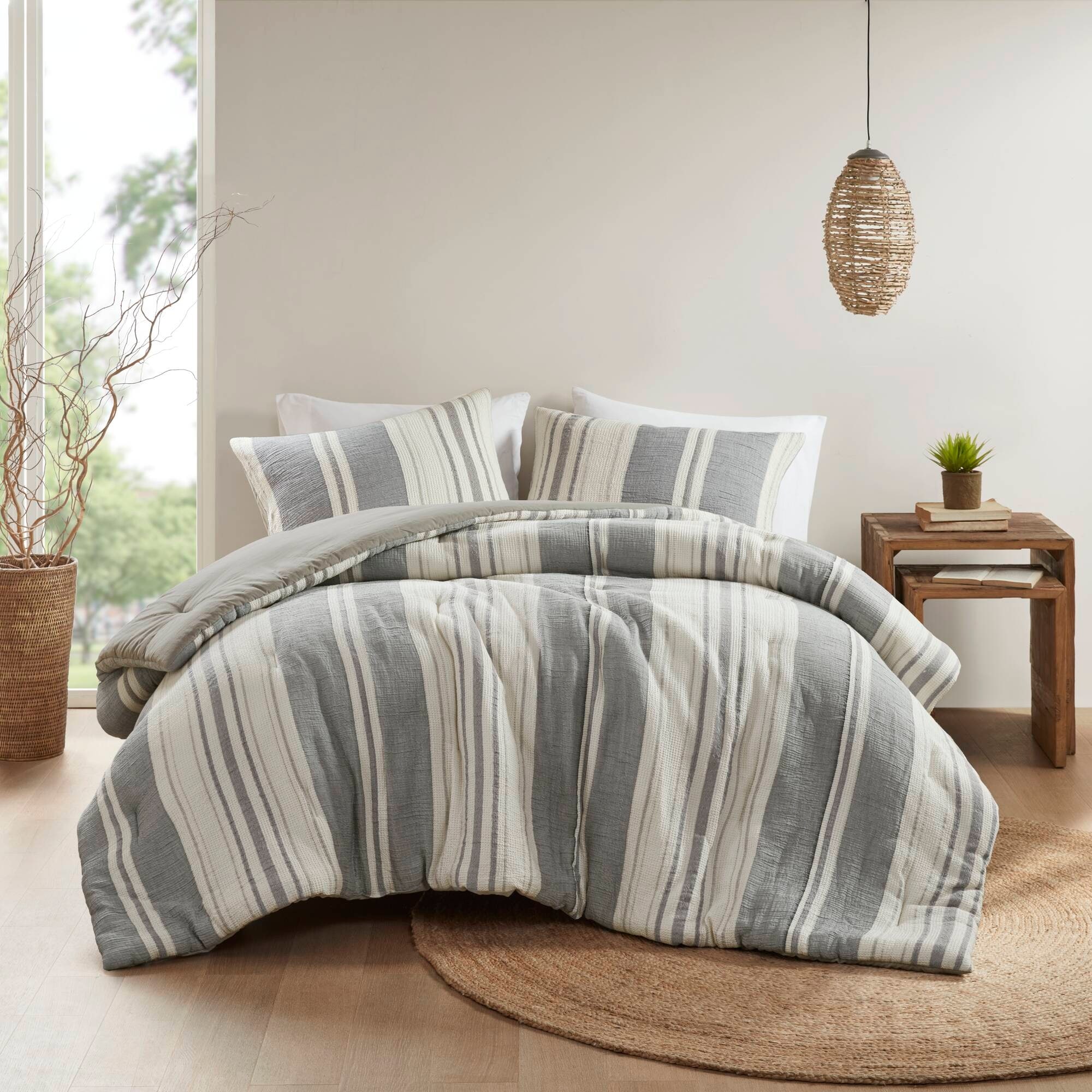 GDF Studio - Amara Textured Cotton Comforter 3-Piece Set with Waffle and Gauze Weave