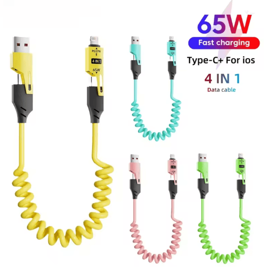 PowerLink 4 In 1 65W Fast Charging Cable Multi Port USB Type C Charger For IPhone, Samsung, Xiaomi, Huawei pink
