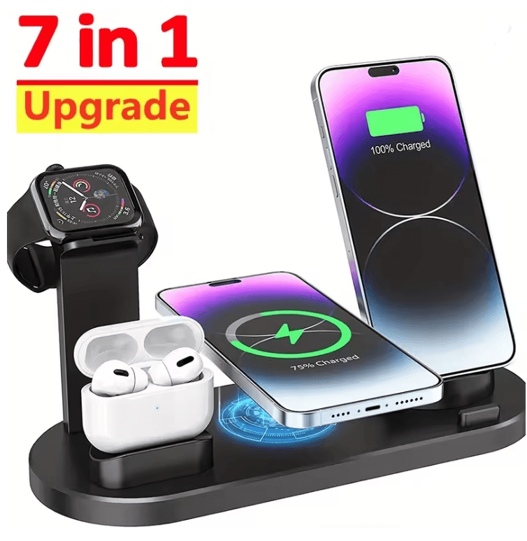 7 In 1 Wireless Charger Stand For IPhone Apple Watch And AirPods black