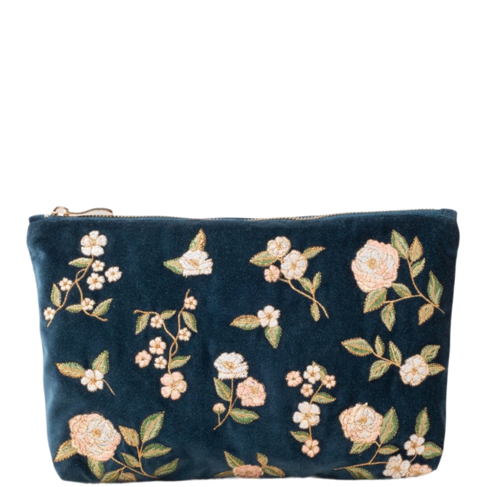 Elizabeth Scarlett Wild Rose Velvet Everyday Pouch - Ink Blue