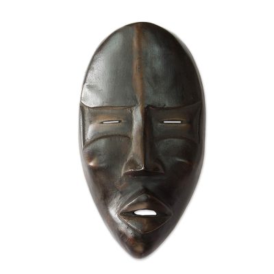 Ghanaian wood mask, 'Beautiful Soul' - Hand Crafted African Wood Mask