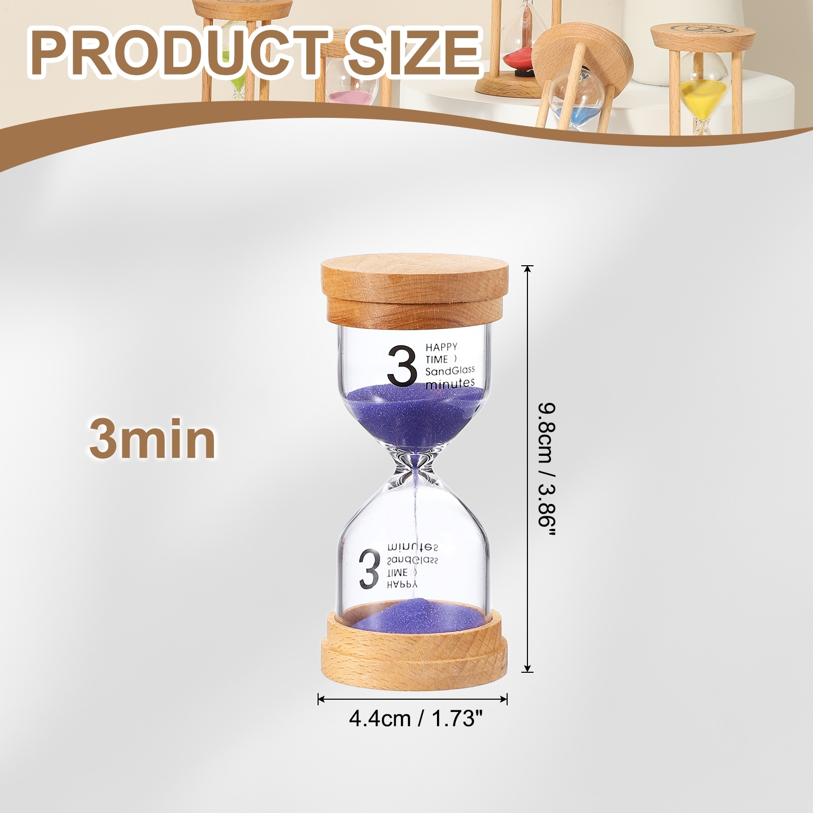 Sand Timer, Wooden Sand Watch High Glass Sandglass Timer for Living - 3 Minute