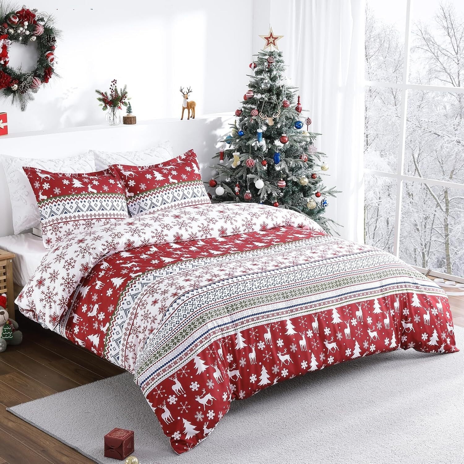 Boho Holiday Christmas Duvet Cover and Pillow Shams Set, Bedding Set