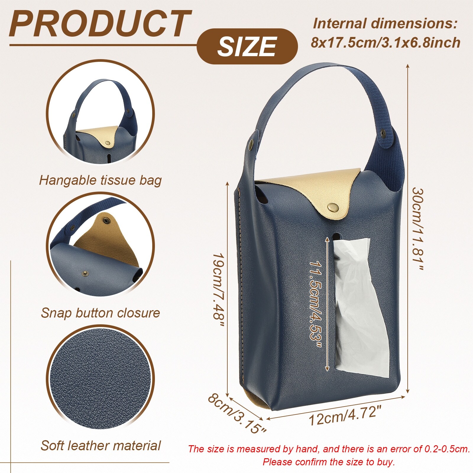 PU Tissue Box Cover with Button Tissue Holder - 7.48 x 4.72 x 3.15 Inch