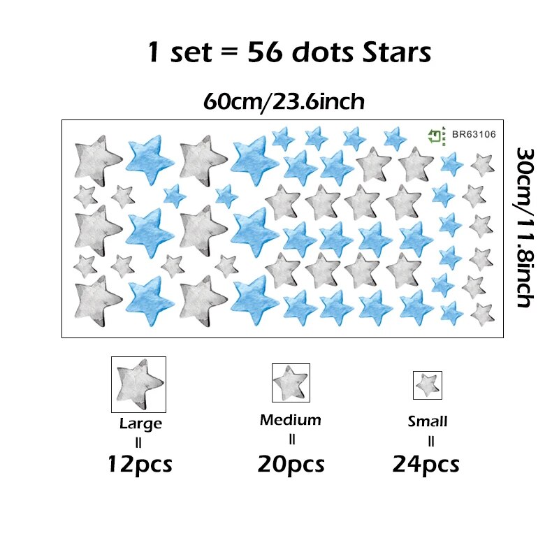 Watercolor 56 Dots Blue Grey Stars Wall Stickers For Kids Bedroom 1