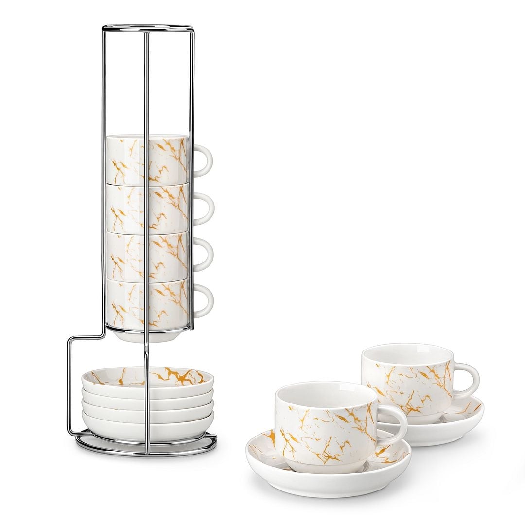 MALACASA Stackable 6-Piece Porcelain Espresso Cup Set for Coffee & Tea