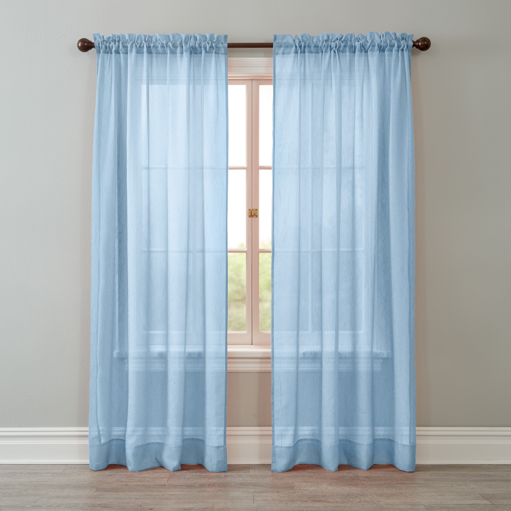 Wide Width BH Studio Crushed Voile Rod-Pocket Panel by BH Studio in Powder Blue (Size 51" W 72" L) Window Curtain