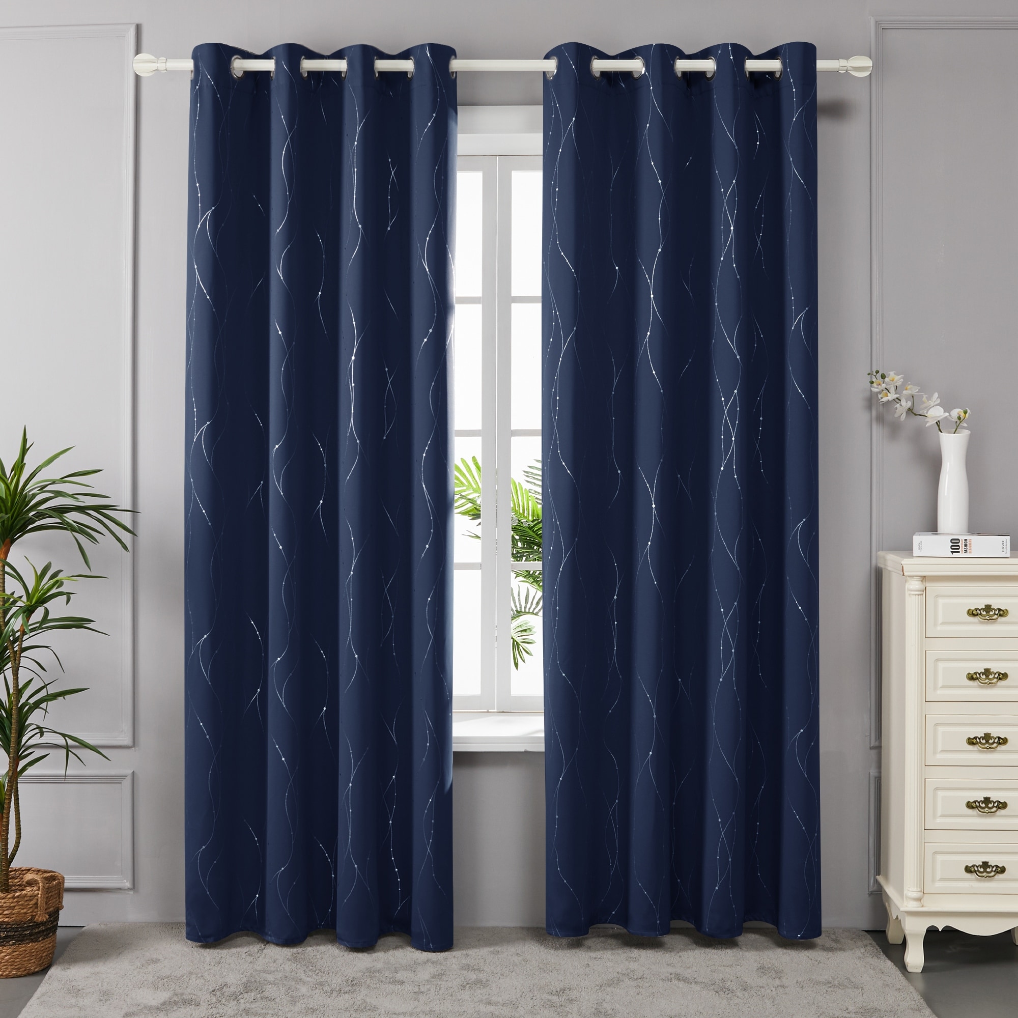Room Darkening Silver Foil Pattern Grommet Curtains 2 Panels
