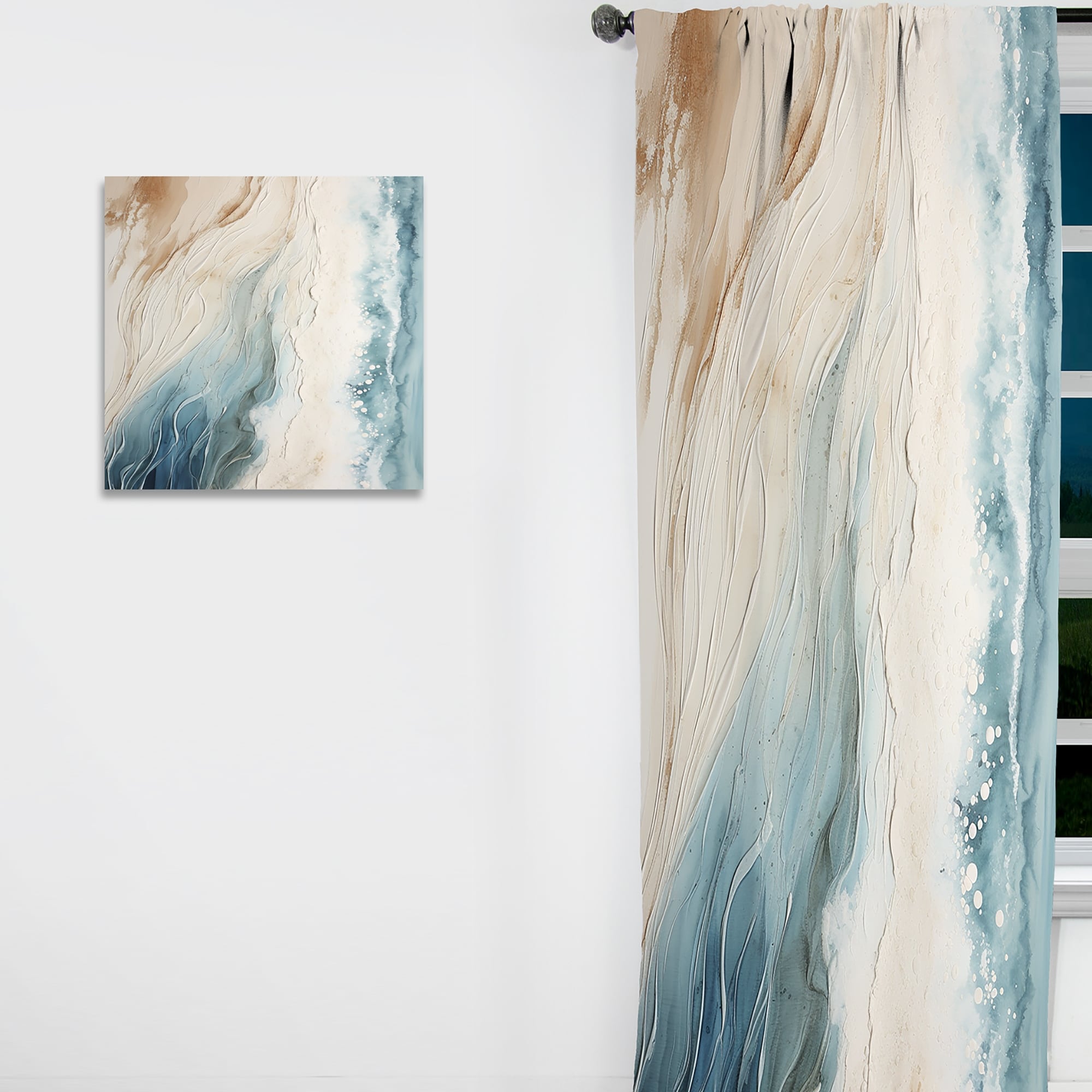 Designart - Modern Blue And Beige Sand Aerial View V - Beach Sand Curtain - Blackout Coastal Curtain - 1 Panel