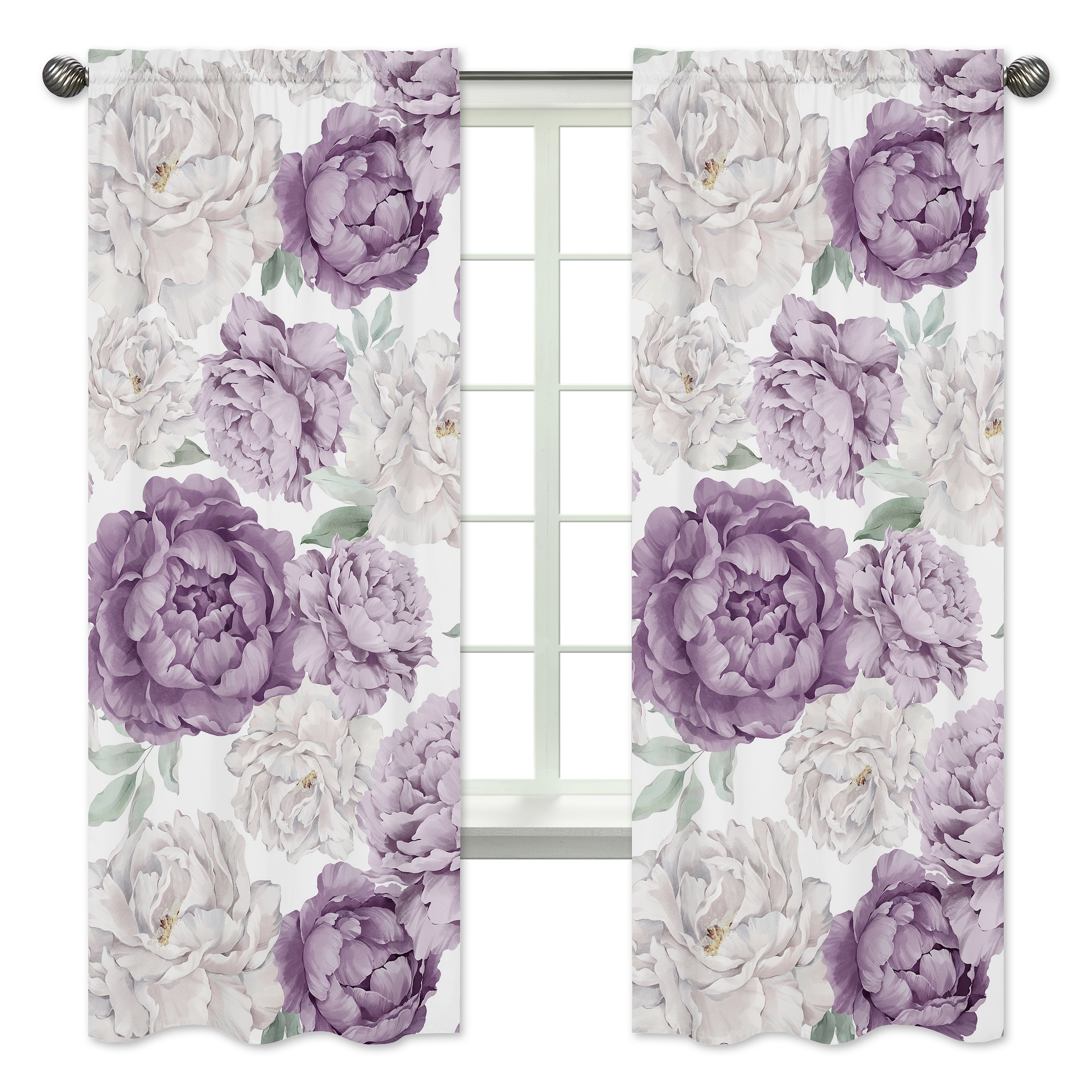 Sweet Jojo Designs Lavender Purple Boho Shabby Chic Floral Girl 84in. Window Treatment Curtain Panel Pair Bohemian Watercolor