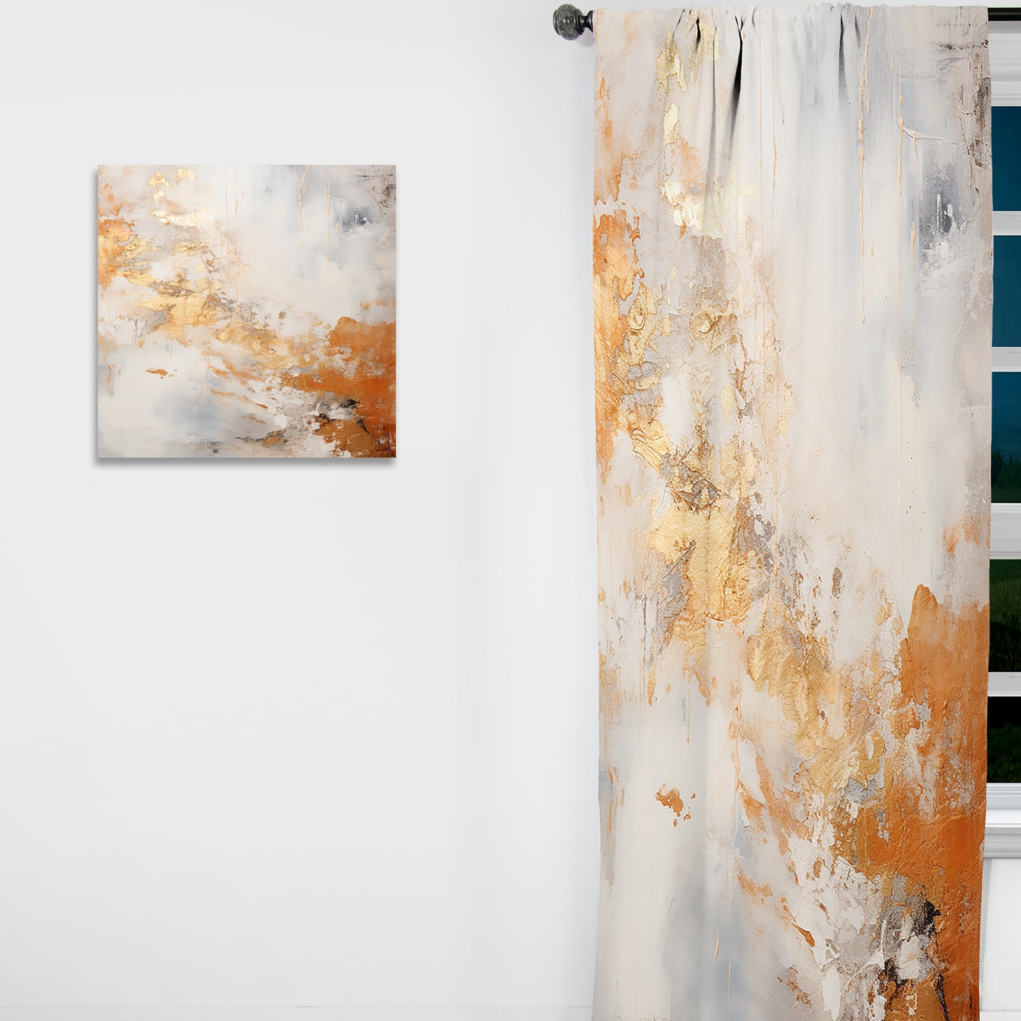 Designart "Beige And Gold Snow Blooming II" Abstract Shapes Curtain - Blackout Abstract Curtain - 1 Panel