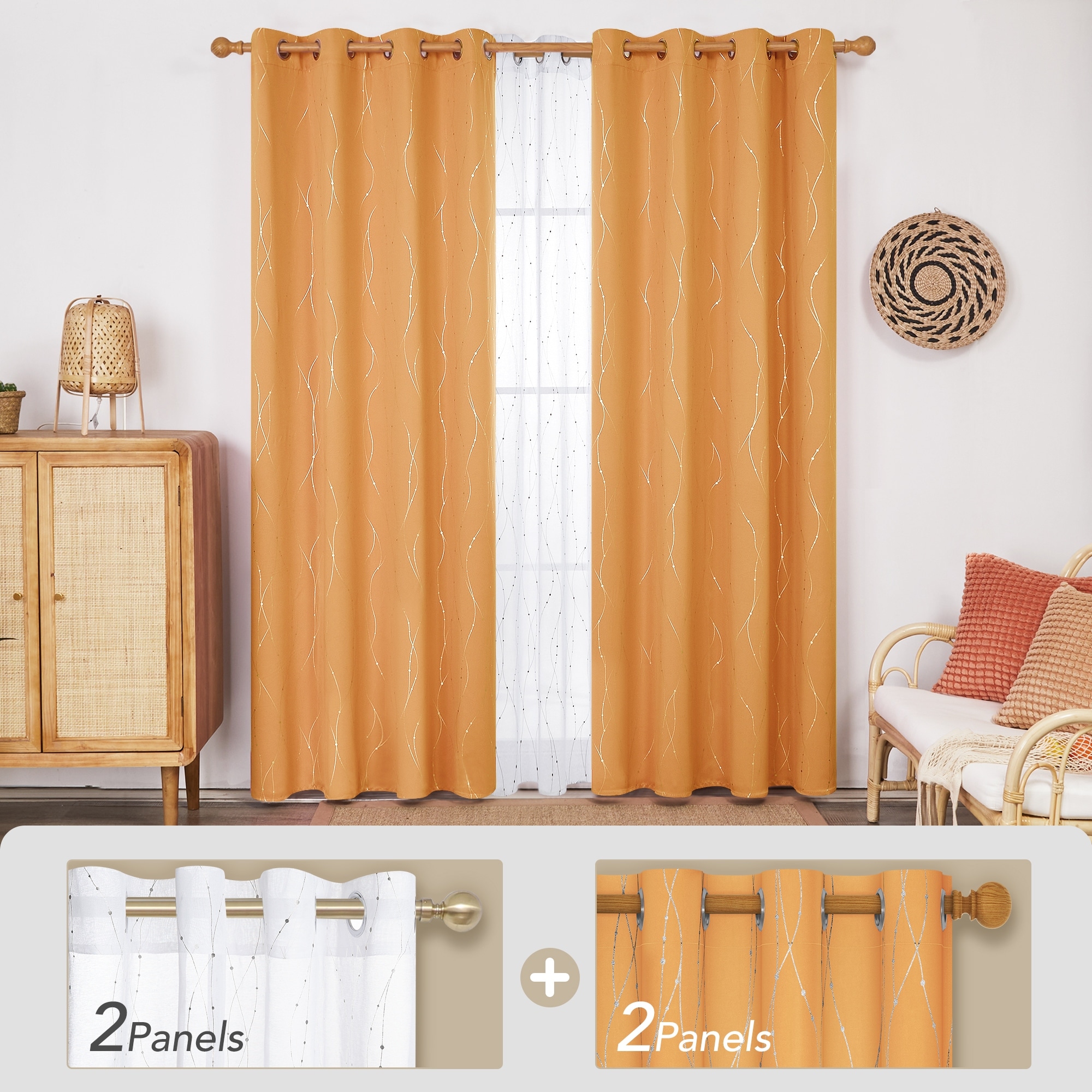 Deconovo Mix and Match Blackout and Sheer 4 Piece Dots and Line Curtain Panel Set