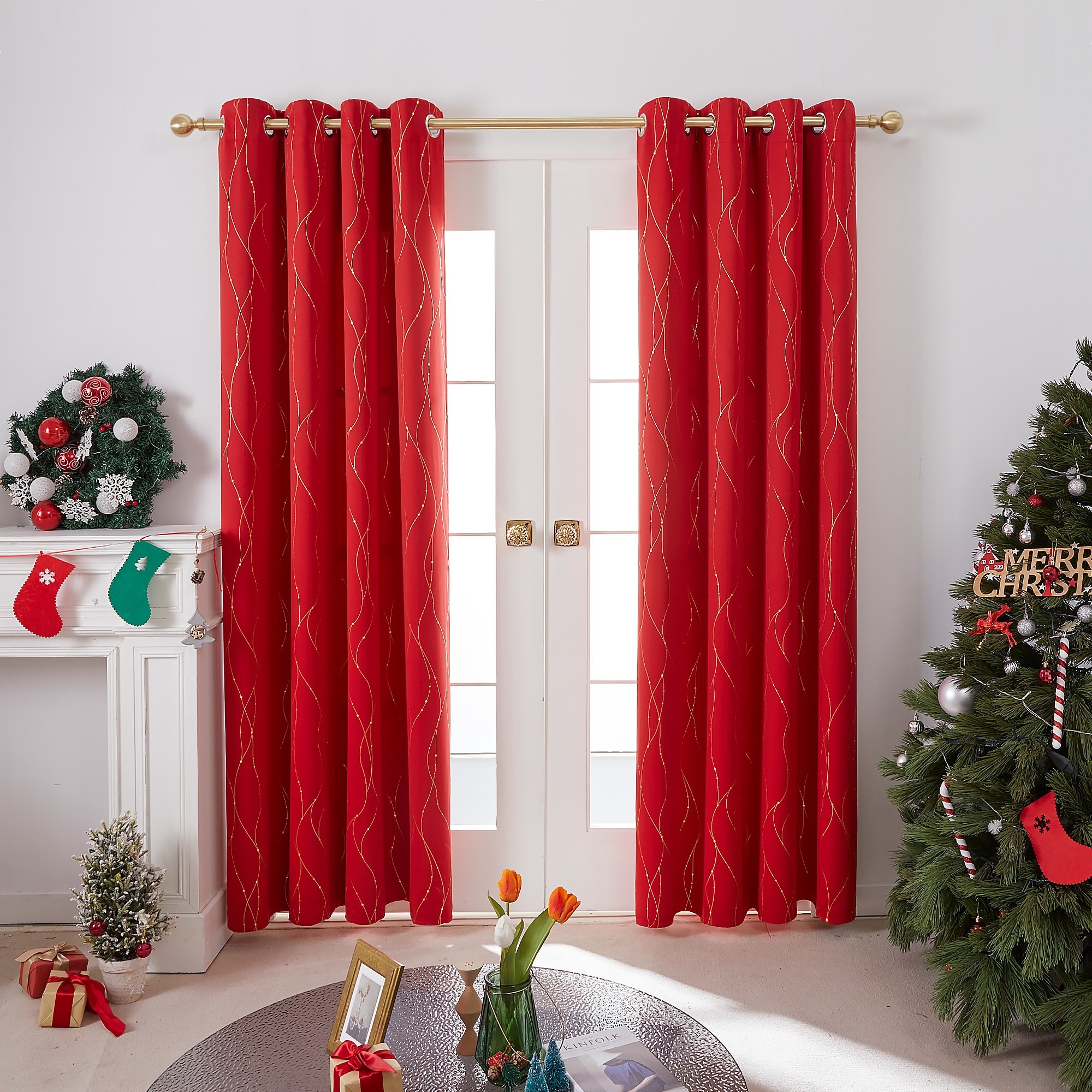 Wave Pattern Blackout Curtains Grommet Drapes for Living Room