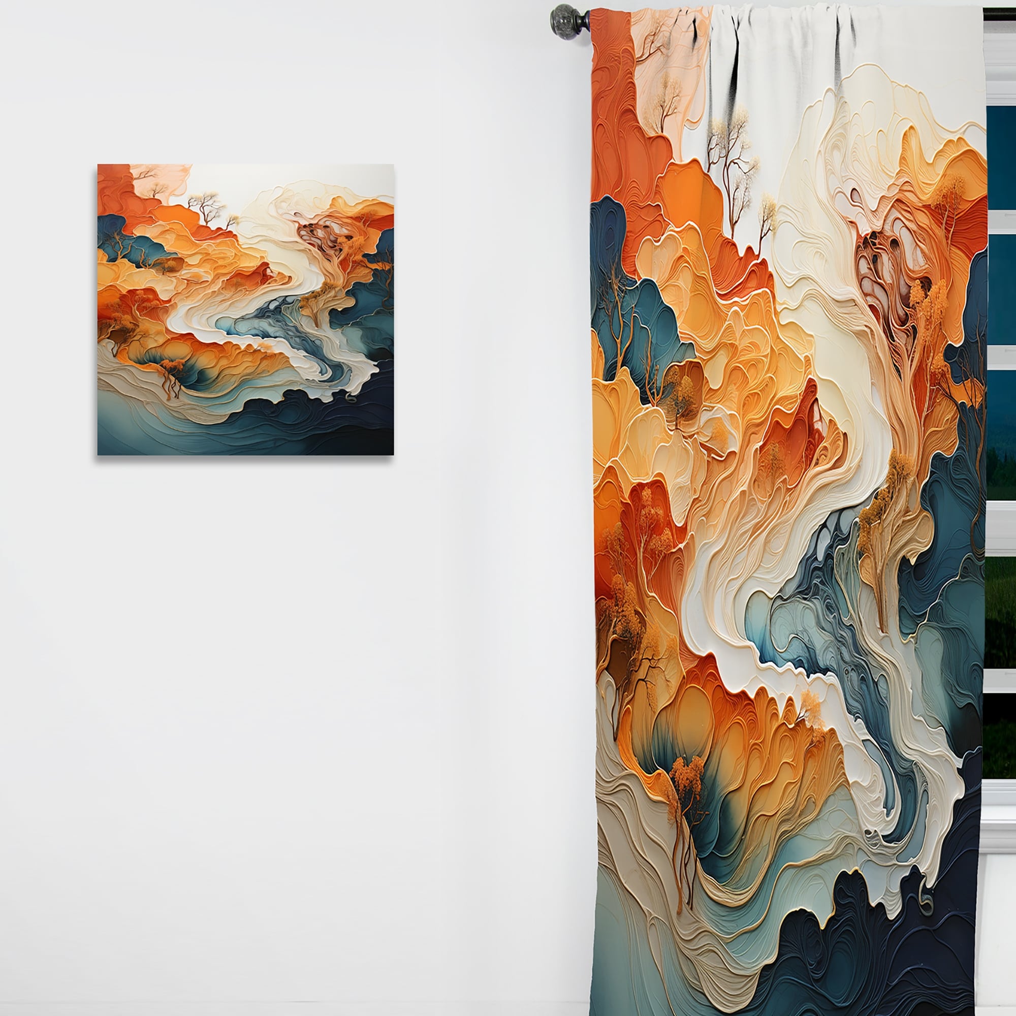 Designart "Abstract Orange And Blue River Ink I" Abstract Marble Curtain - Room Darkening Marble Curtain - 1 Panel