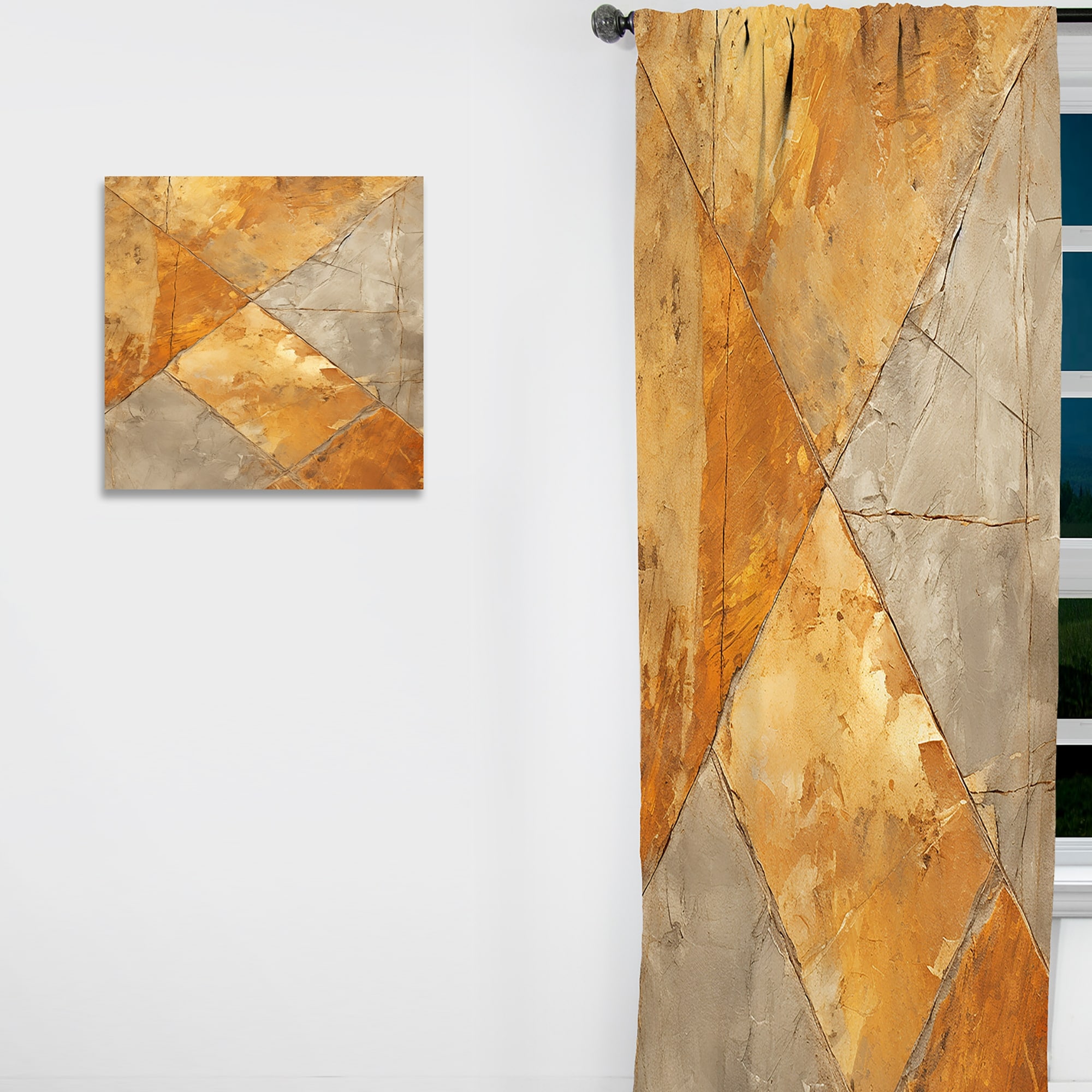 Designart "Gold Abstract Tile Mosaic Charm" Abstract Tile Curtain - Blackout Abstract Curtain - 1 Panel