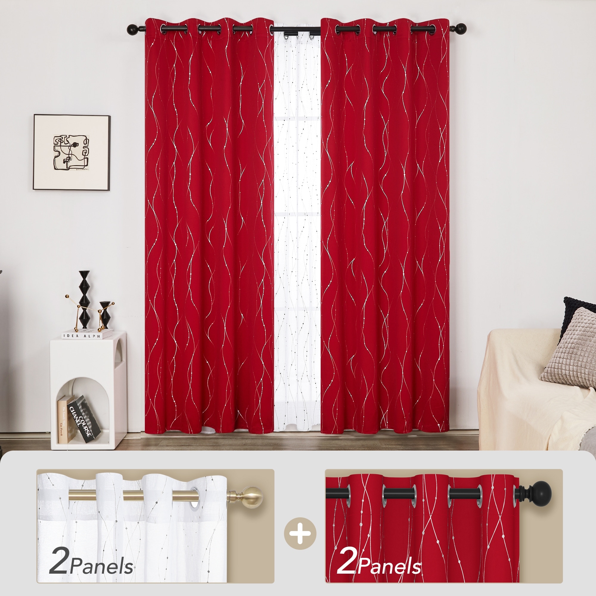 Deconovo Mix and Match Blackout and Sheer 4 Piece Dots and Line Curtain Panel Set