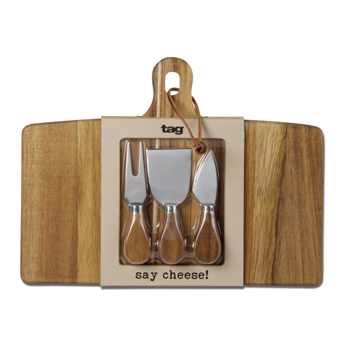 Long Acacia Wood Cheese Board Set of 4 with Stainless Steel Utensils - Natural Cutting Boards for Everyday Use