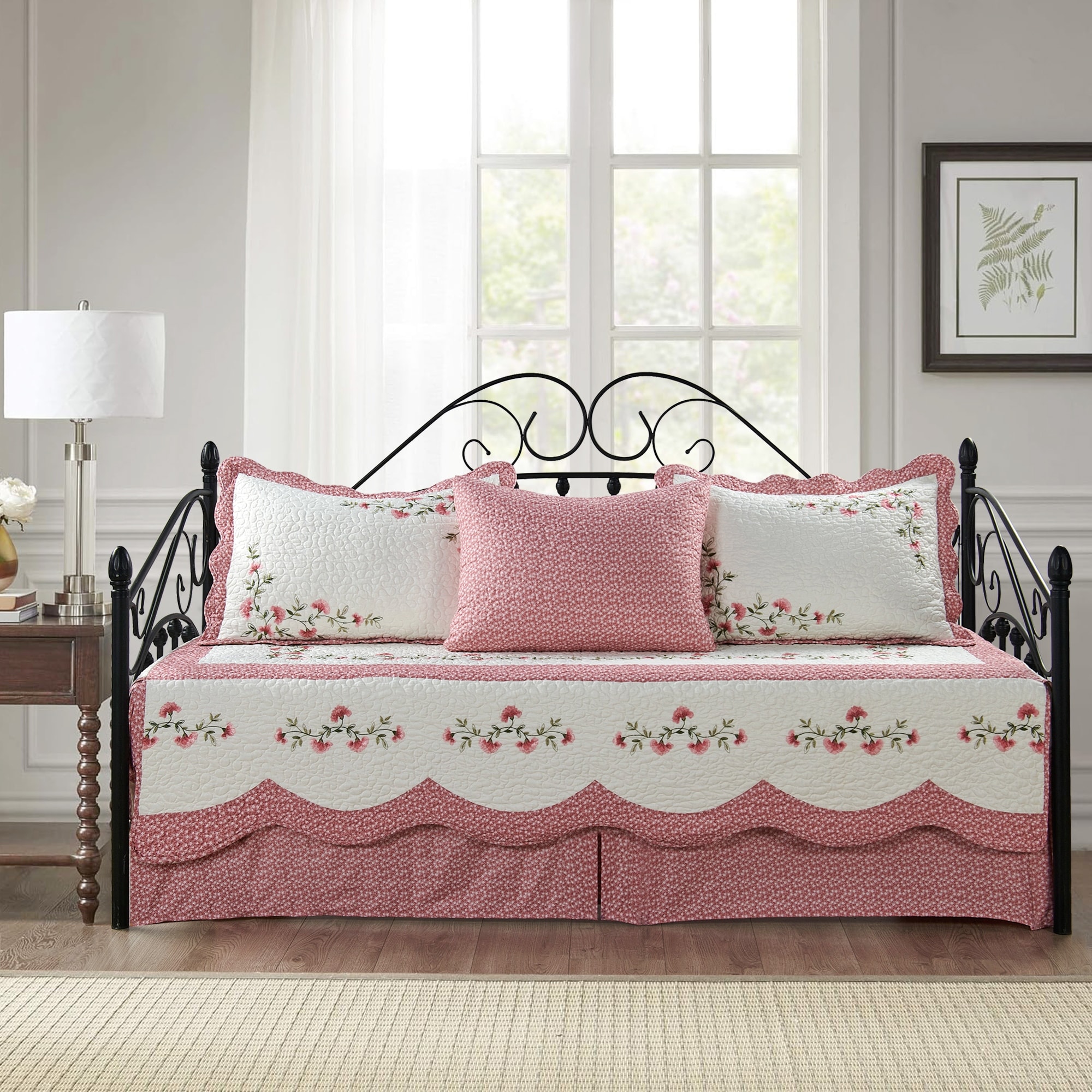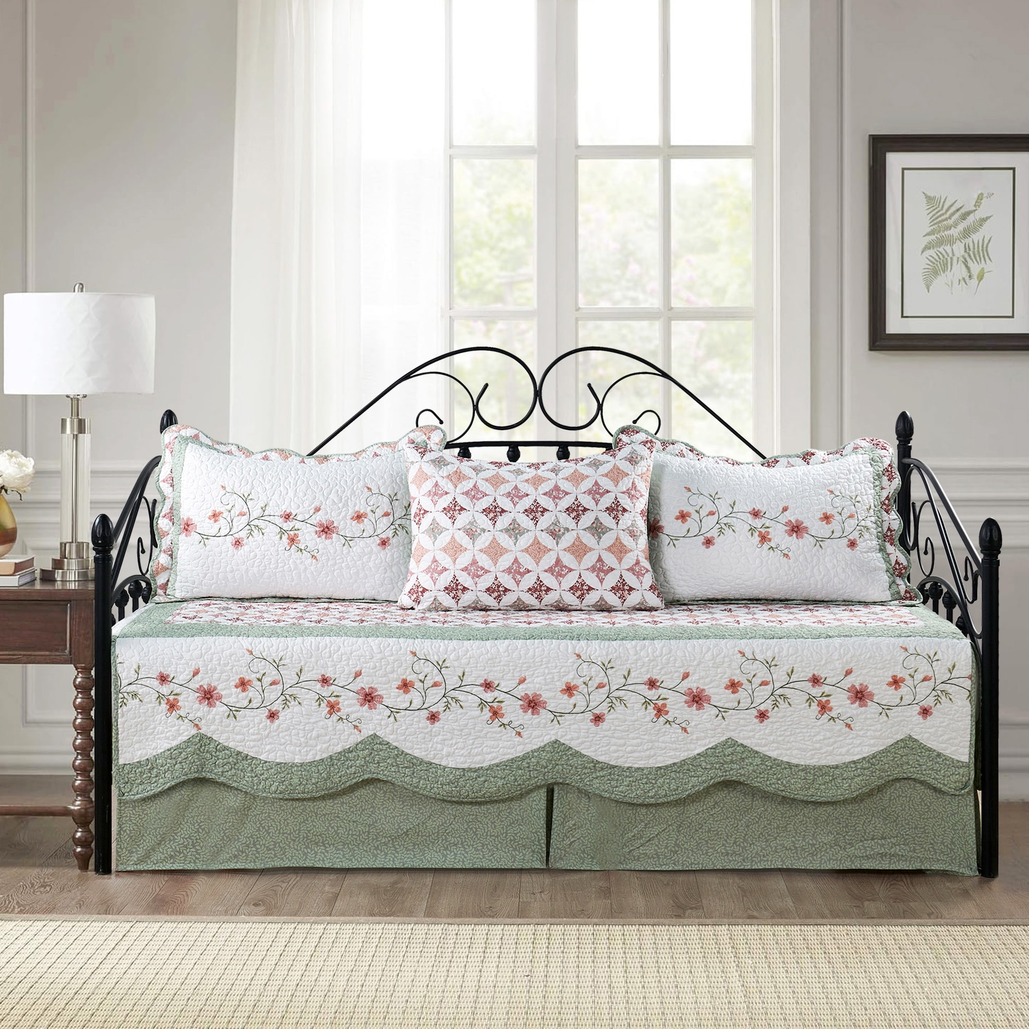 5 Piece Embroidered Daybed Cover Set with Bedskirt