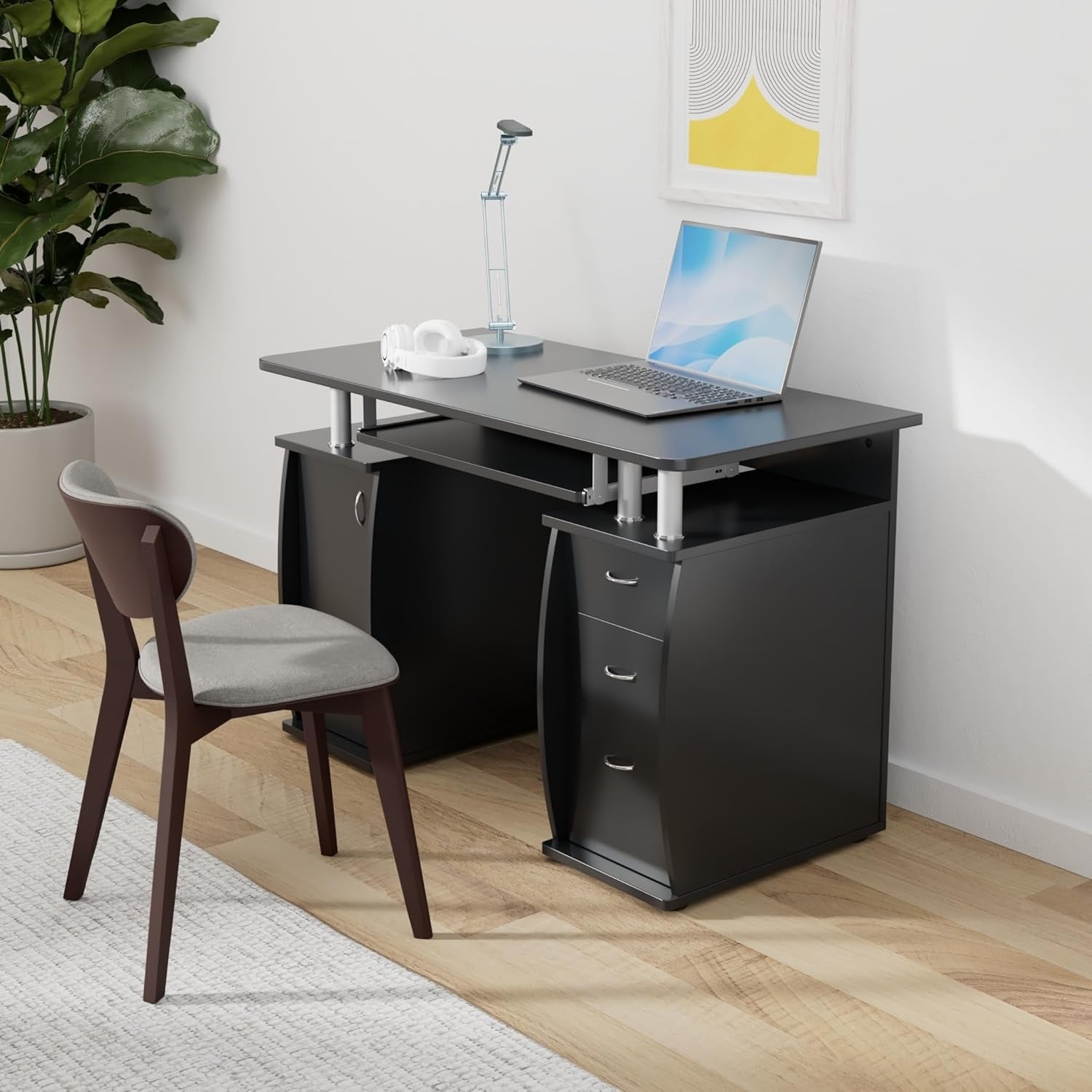 45 Inch Home Office Computer Desk with Cabinet and Drawers, Black