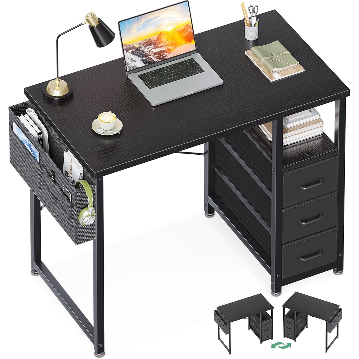 32-Inch Compact Study Desk with Fabric Drawers, Space-Saving Writing Table for Bedroom, Home Office, Dorm, Black