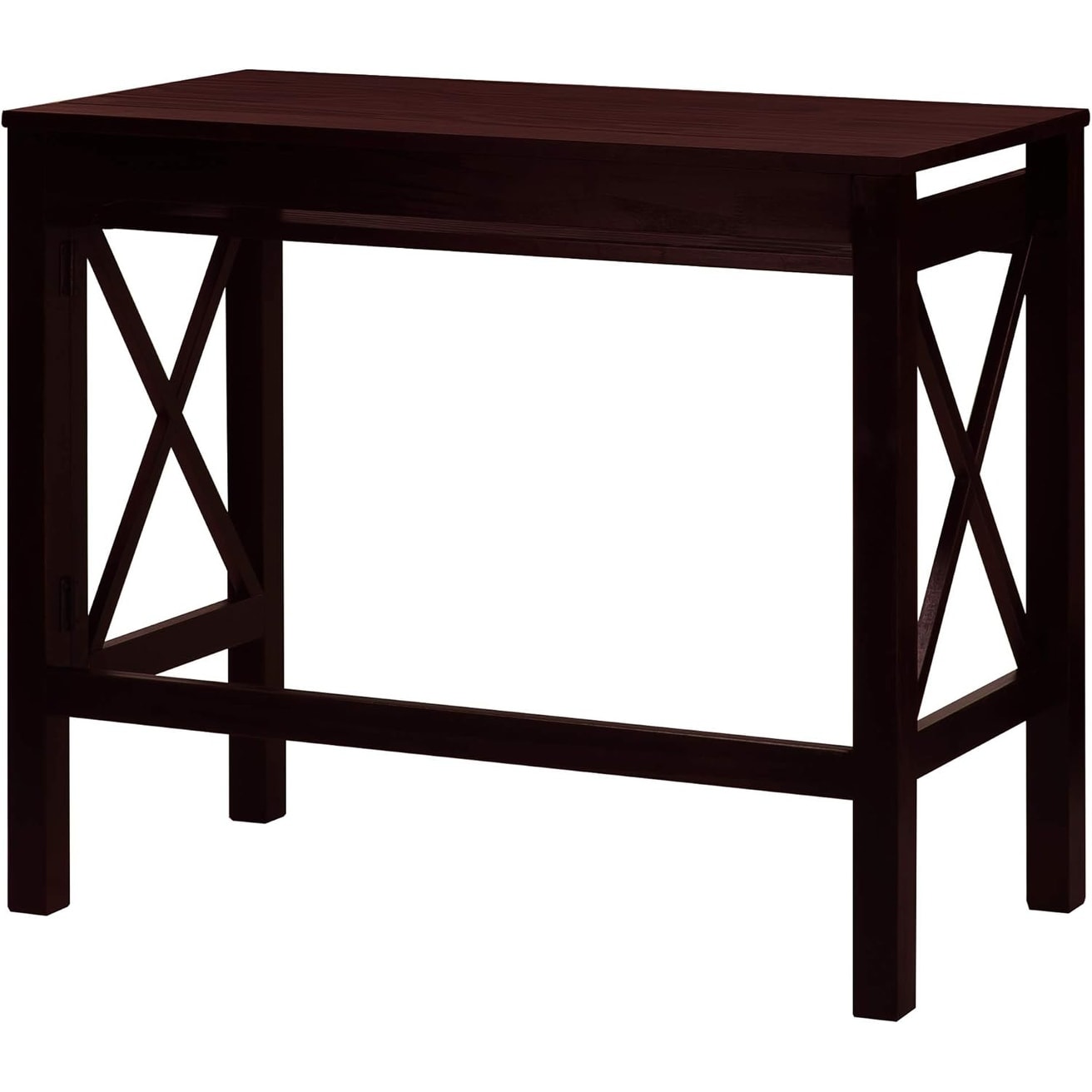 Modern Folding Desk with Pull-Out Tray, Espresso Finish, No Assembly Required