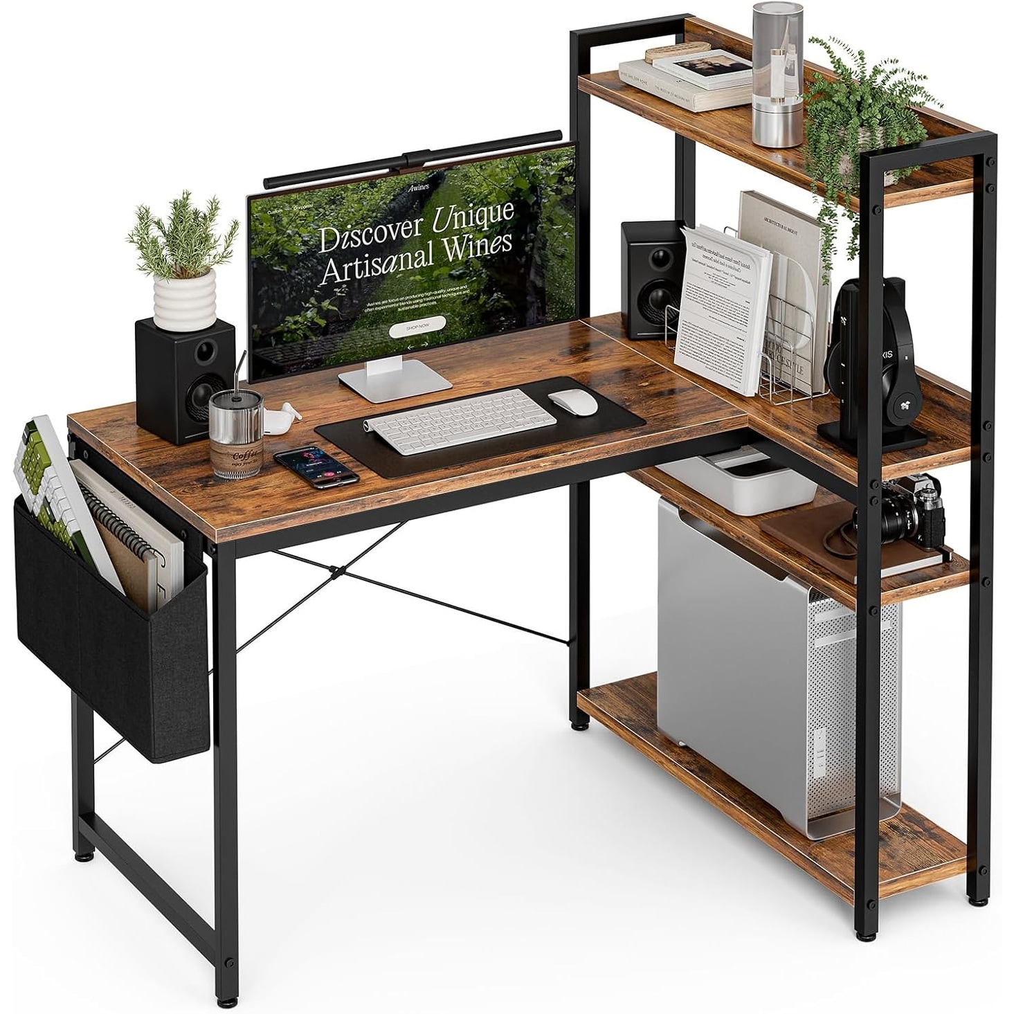 40 Inch L Shaped Computer Desk with Reversible Storage Shelves, Home Office Corner Desk Study Writing Table