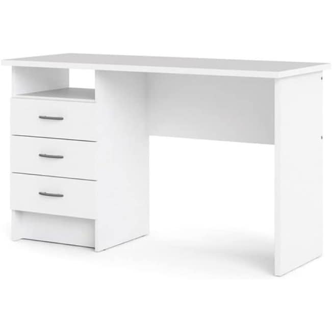 White Contemporary Desk with 3 Drawers and Shelf, Fade Resistant, Scandinavian Design