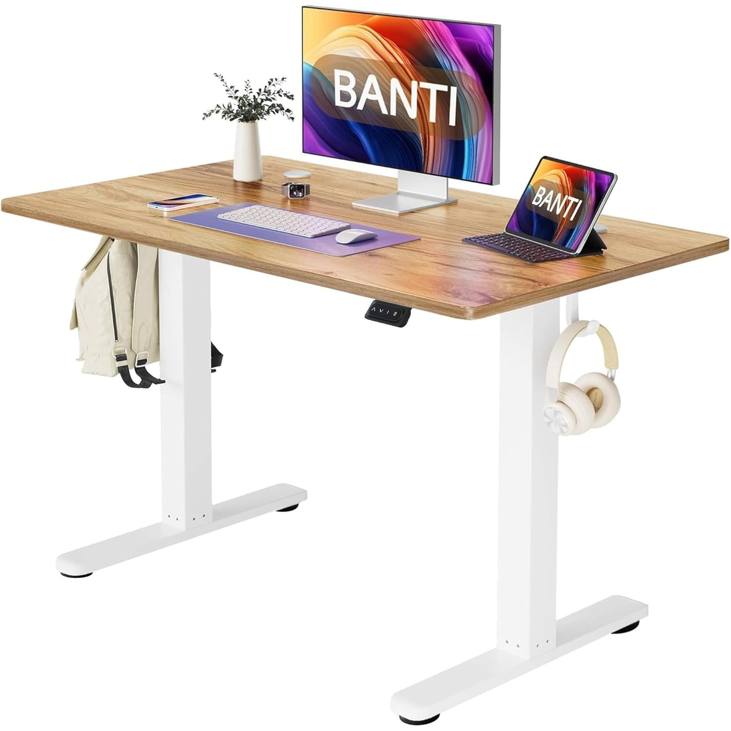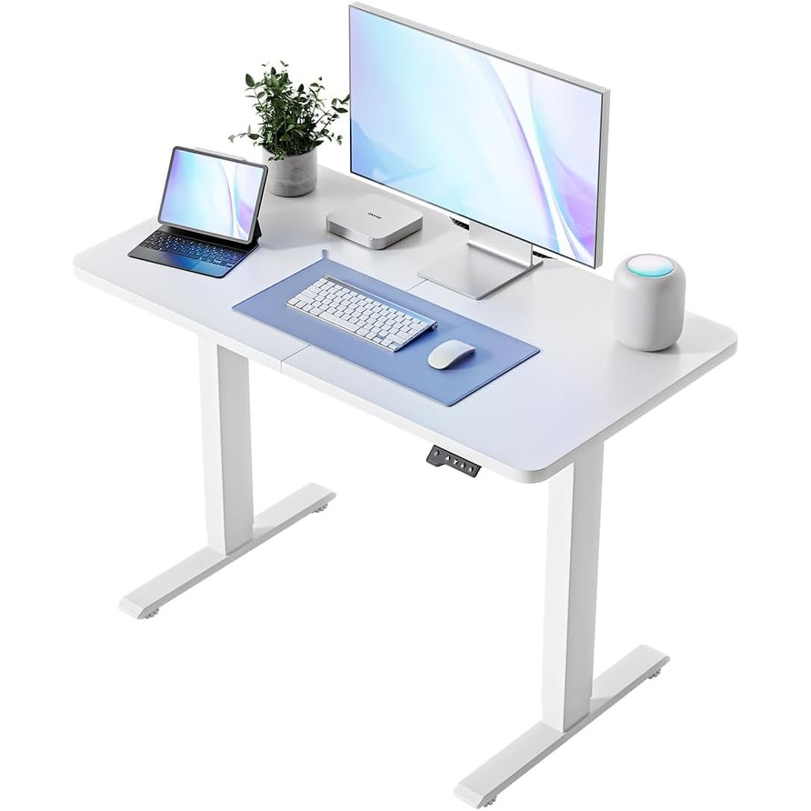 Electric Height Adjustable Standing Desk, 43x24 Inch, White Frame & Top, Easy Assembly, with Accessories
