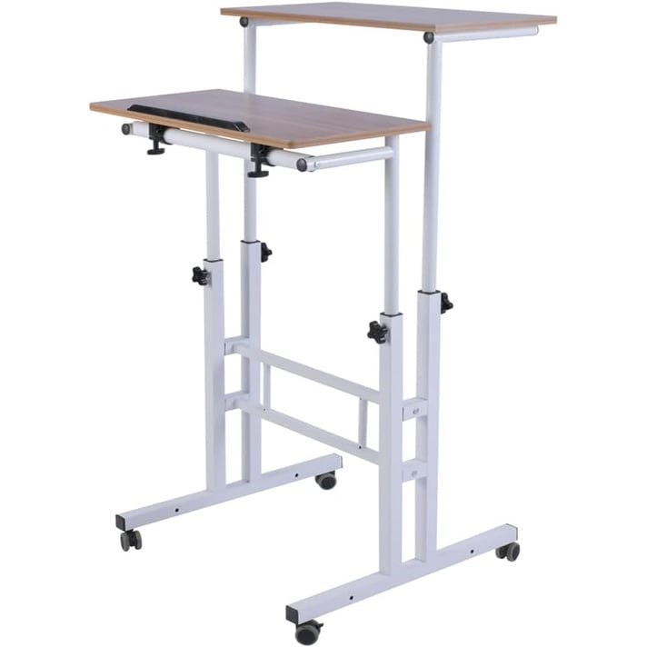 Adjustable Height Dual Desktop Mobile Standing Desk with Rolling Wheels for Home Office Workstation