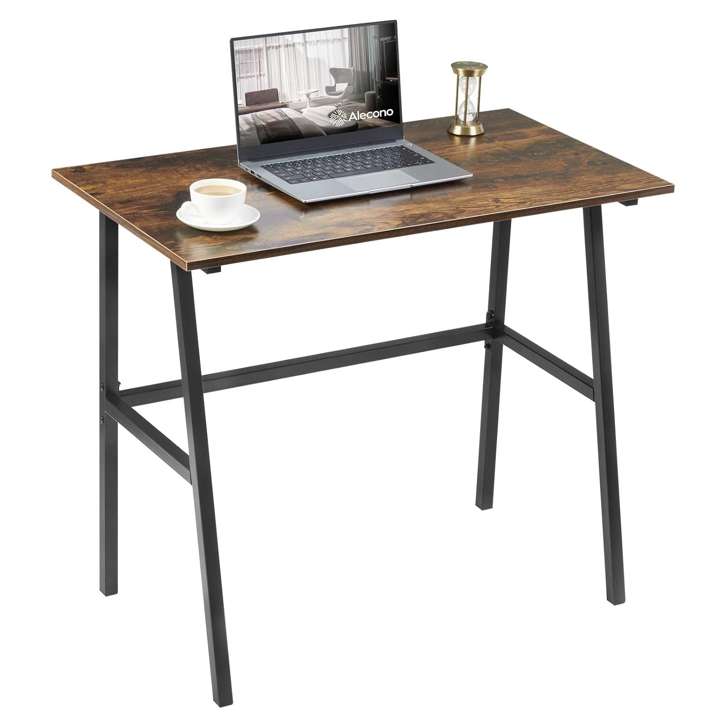 Compact 35'' Small Computer Desk with H-Shaped Metal Frame, Rustic Brown, Easy Assembly