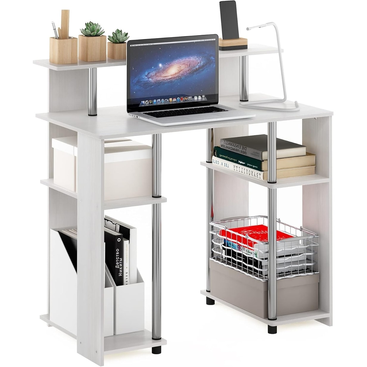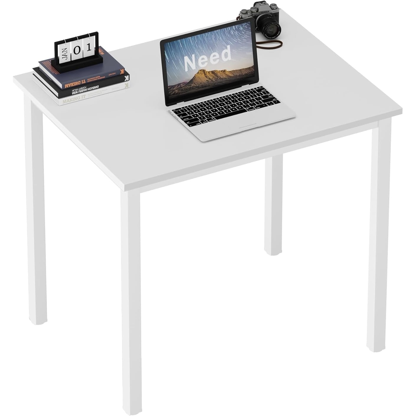 Compact 31.5'' Home & Office Writing Desk, White Desktop & Frame, Easy Assembly, BIFMA Certified