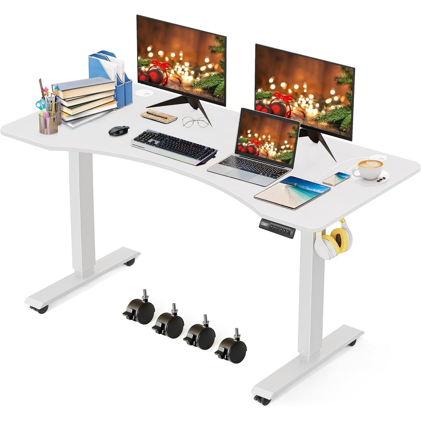 Adjustable Height Electric Standing Desk with Memory Preset and Wheels for Home Office