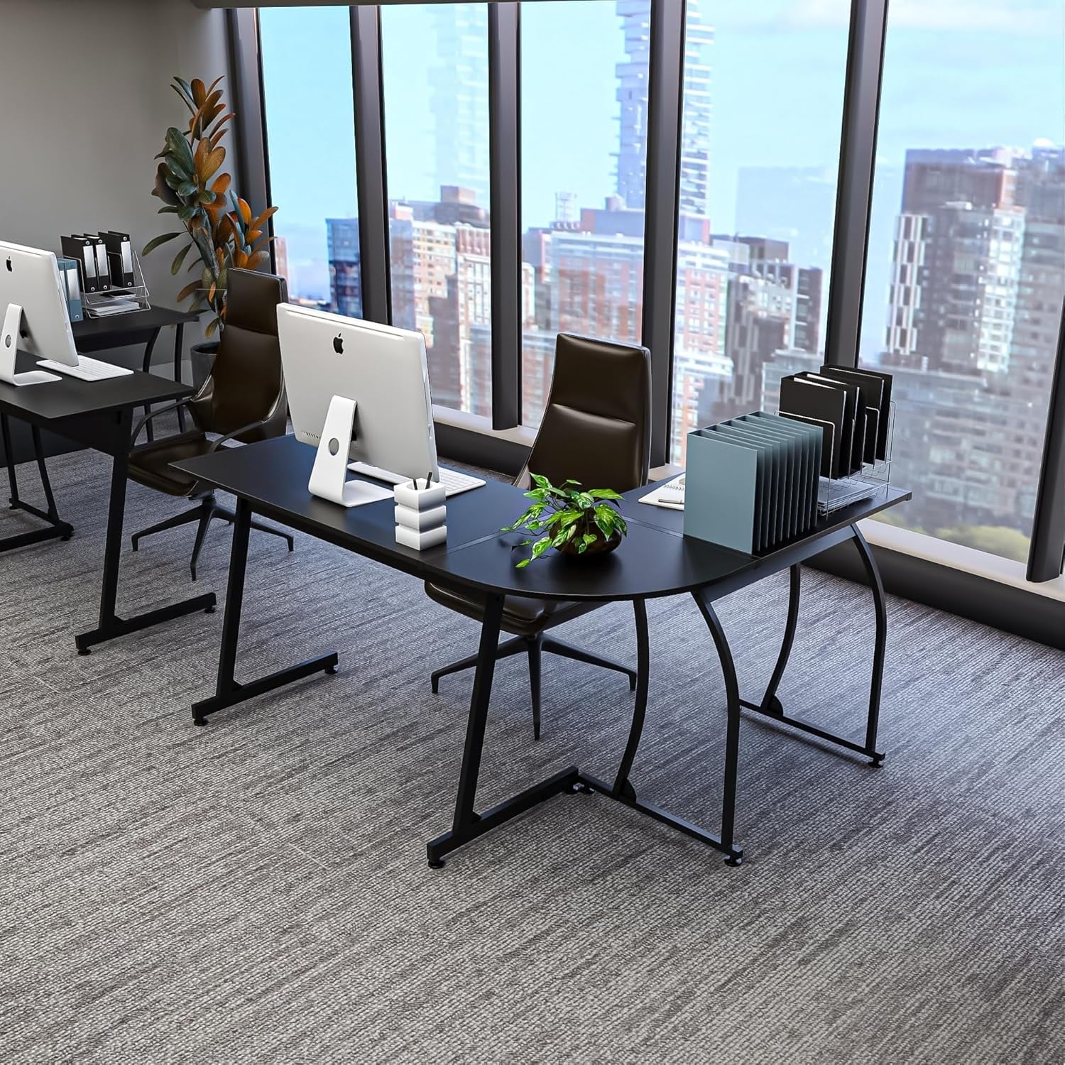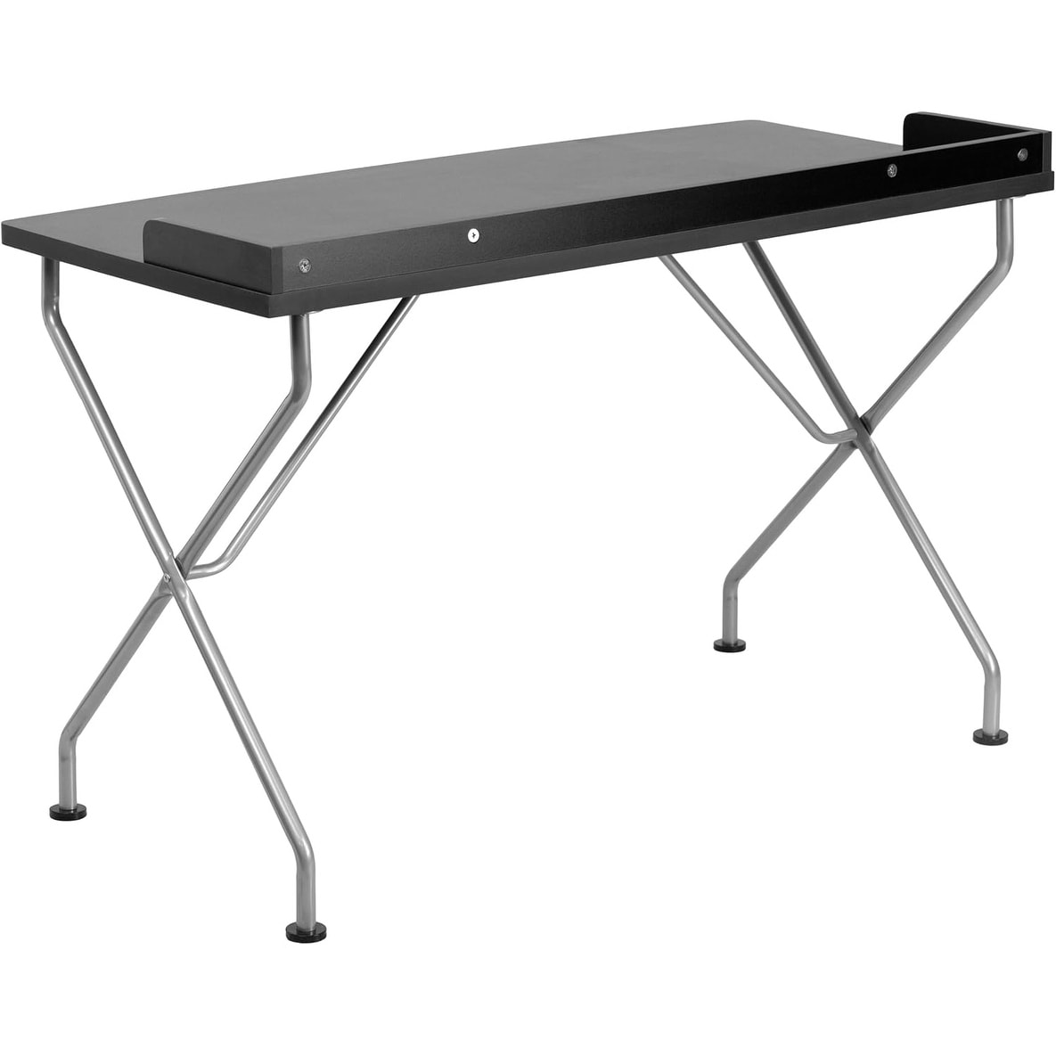Modern Black Computer Desk with Silver Metal Frame and Raised Border