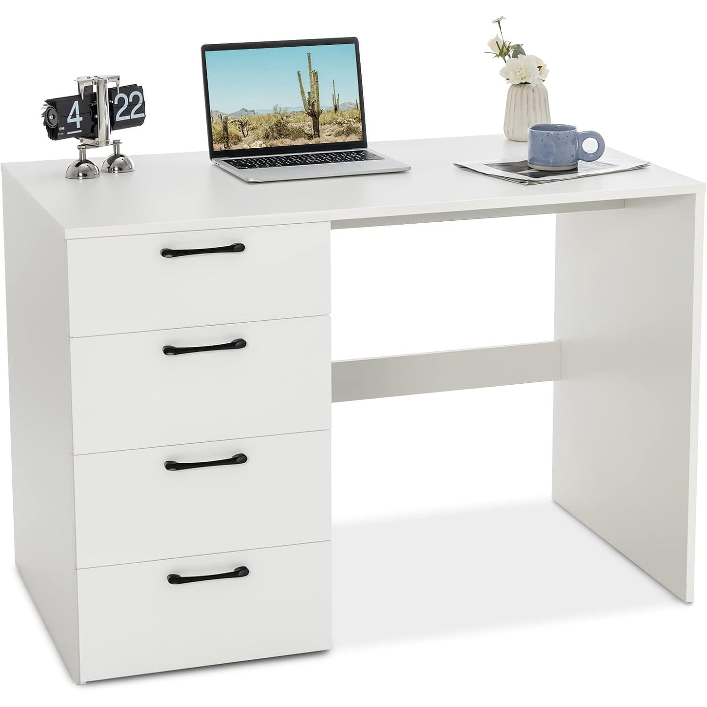Modern White Desk with 4 Storage Drawers, Home Office Writing Desk, Laptop PC Desk, Vanity Makeup Table