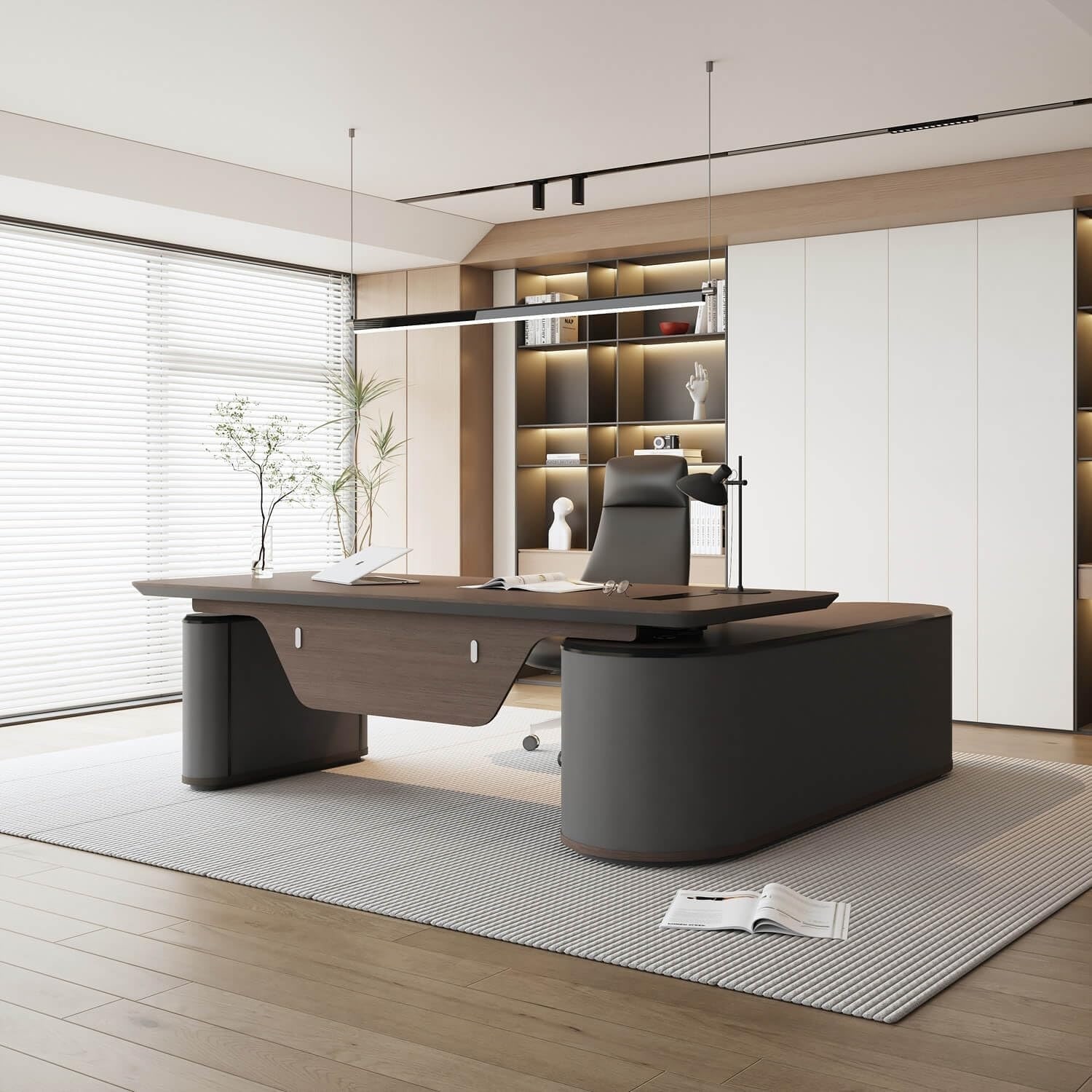 L-Shaped Desk with Spacious Surface and Integrated Cable Management for Modern Workspaces