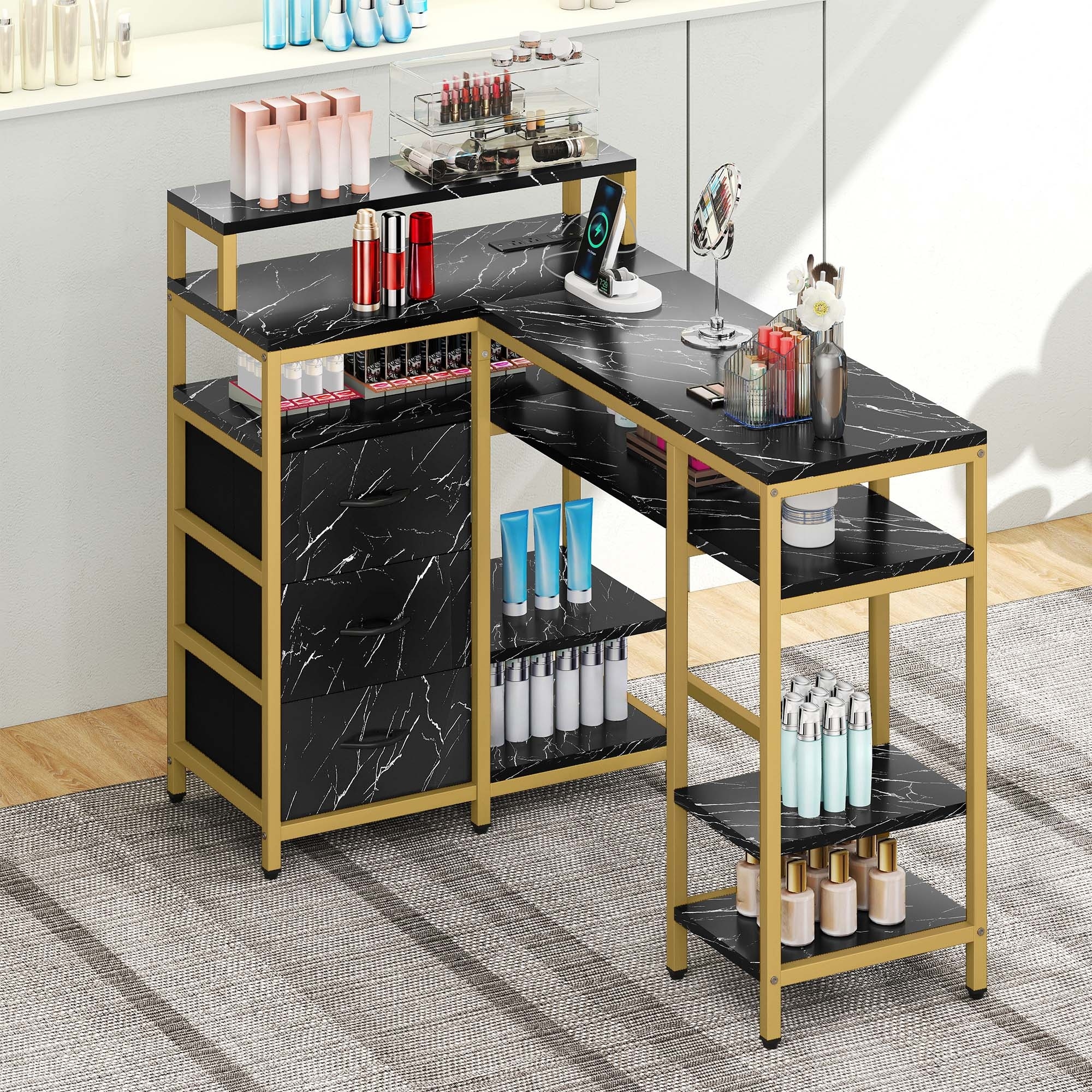 Reversible Vanity Desk with 5 Drawers, Glossy White Dressing Table