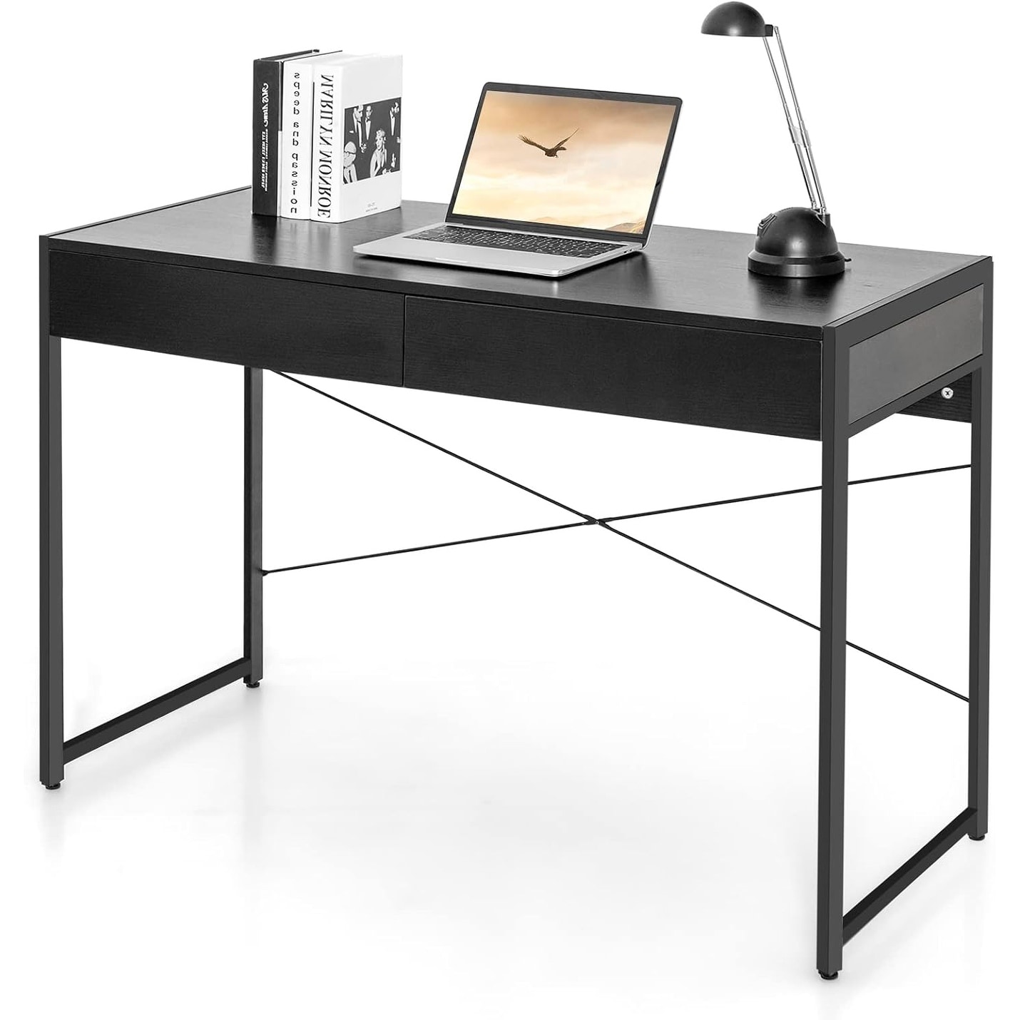 Compact Wooden Study Desk with 2 Drawers, Steel Frame, 44-Inch Workstation for Home Office, Bedroom